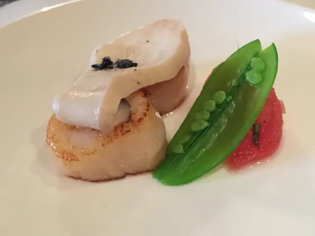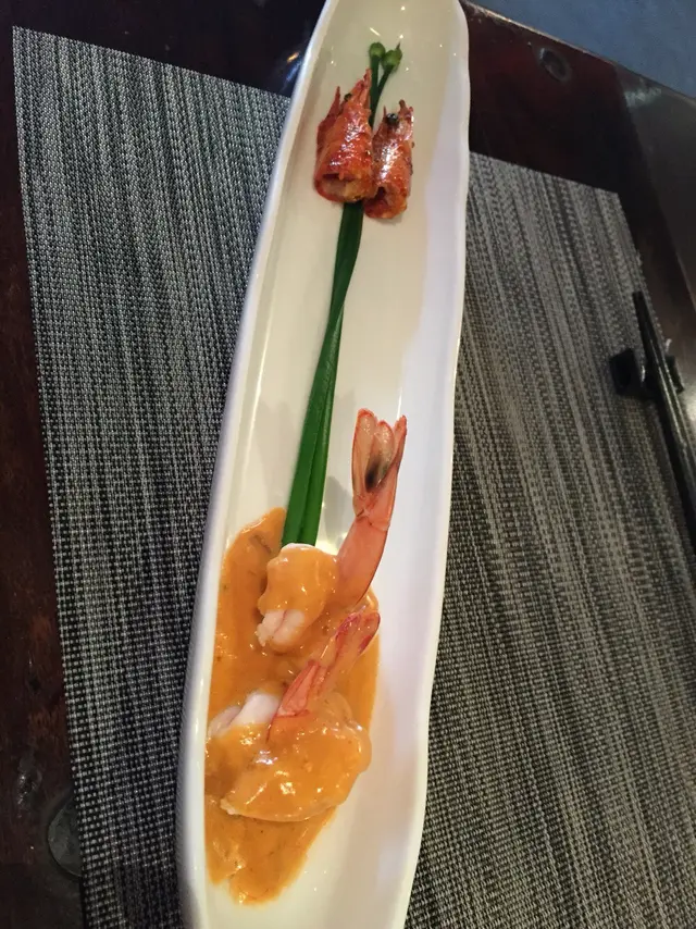 番茄沙司鮮元貝 ~ 元貝是香煎的,整顆吃進去外香內軟多汁葡汁鮮蝦 ~ 香煎過的鮮蝦配上特製汁,很絶配