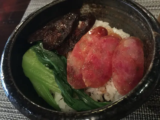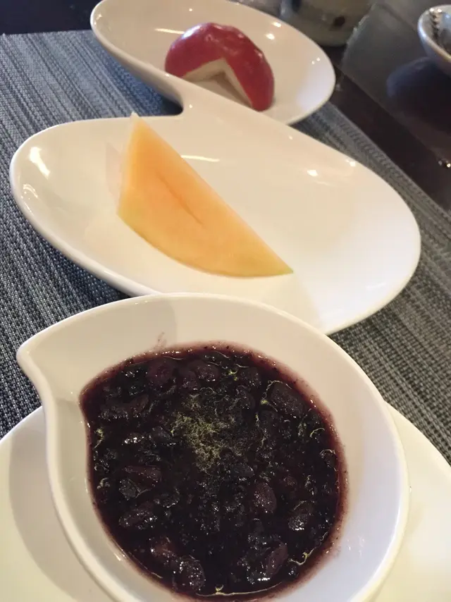 )飯 ~ 是臘腸加潤腸飯,台灣人也喜歡吃臘味飯的嗎?這是香港冬天隨處可見的煲仔飯,在這裡吃的味道更上一層,小碗的份量剛好,白米很像日本居酒屋的那種,我們已經很飽了,但不能辜負美食呢⋯⋯甜品 ~ 紫米紅豆甜湯/蓮霧 / 哈蜜瓜很回味滿足的一次旅行飲食!