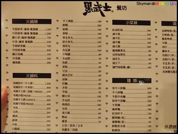 冷冷的天氣又快來了,吃火鍋的時間又要來臨了,想當初再台中念研究所的時候三不五時都在衝無老鍋、鼎王等麻辣鍋店,現在隻身在台北還真不知道台北有哪些麻辣鍋店可以衝一下,就在這個moment,朋友說要帶我到台北東區某間知名麻辣鍋店,一問之下叫黑武士?啥?店名也太特別了吧?衝了就知道!黑武士麻辣鍋的外觀看起來很像泡沫紅茶店,從外面就看到裡面有滿滿的人黑武士的菜單看起來價位稍高一點,但你如果來這還不吃鍋類,倒也還是有其他的東西可以點啦醬料區,你想怎麼調就怎麼調,moka當然就是要再最後要加上一大把蔥花才行嚕老闆私房釀的冬蟲夏草藥酒,看起來很補會噴鼻血的樣子上菜了,先來的是綜合丸子,我想吃麻辣鍋的人都會來上一盤吧辣辣鍋的好朋友,滷牛筋、牛肚,就顏色看起來是滷的相當入味滷大腸跟其他配料,真的很推薦來上一些,搭配之後要上場的湯頭非常好吃麻辣鴛鴦鍋上桌,大塊的鴨血和凍豆腐,黑武士麻辣鍋的湯頭蠻妙的,說辣也並不辣、說麻也還好,在適中的麻辣味中帶出中藥香氣,直接喝湯的話不會有受不了的感覺,頂多就是被花椒弄的麻麻的,酸菜鍋的部份超級夠味,夠味的意思並不是說他超酸而是酸菜的香氣夠,來上一碗整個大開胃再來要介紹令一個非常銷魂的湯頭,芋頭排骨湯,湯頭相當的濃郁,喝的出來是很用心熬過的,除了價錢貴了點,預算夠的話真的推薦來喝喝看接下來要介紹本日最貴的兩道菜,美國和牛,800元一盤美國和牛,1200元一盤,大概有10片左右,雖然價格貴的有點驚人但肉質的確也是相當好,基於經濟考量還是建議點比較低價一些肉品,這樣就會跟一般的價位比較相同一點松坂豬肉,肉的紋路相當的吸引人芋頭排骨湯底,湯底呈現淡淡的乳白色,順口好喝,老闆會一直過來說要記得攪一攪,免得芋頭泥在下面燒焦了,這湯底moka個人認為比麻辣鍋來的讚!黑武士麻鍋底,有人認為很普通,moka個人認為味道跟以前台中吃到的不太一樣,但以上兩種鍋底也真是太ox的給他貴差點忘記介紹酸菜白肉鍋的好朋友,白肉,油照片看得出來黑武士挑的是漂亮的五花肉下去切薄片,對於喜歡只吃白肉肥部分的人會有些小失望了,但對一般吃酸菜白肉鍋的人來說,相對的健康許多煮熟之後的樣子,我想連女孩子應該都可以接受這樣的肥度美國和牛牛肉片放下去五秒拿起放在旁邊讓他慢慢熟到7分熟超美味,原味最讚!松坂豬肉的標準橫條肉文,QQ脆脆口感的來源最後,也請記得多吃一點蔬菜(那碗裡的牛肚是怎麼回事?)這樣身體才會健康快樂唷^^結論:其實台北東區黑武士是很多大明星的宵夜場,所以在價位上即使高一些他們也還是消費的起,畢竟藝人賺錢強的很,所以在黑武士麻辣鍋的定價上是稍高一些,也可能因為他開在東區有關係,但就味道上來討論是值得一吃的麻辣鍋店,特別是上述介紹的麻辣湯頭、芋頭排骨湯頭,個人認為是有獨特的地方,就吃法上建議可以點評價的肉盤加上一些滷牛肚類的拼盤和蔬菜這樣就可以吃到黑武士麻辣鍋的風味,一人吃下來應該是伍佰有找對,當然的沒有預算限制的人就大開殺戒吧!有時候來這邊說不定還會遇到一些名人,就祝大家好運了。■店名:黑武士餐坊-麻辣鍋 宵夜■地址:台北市東豐街65號■電話:(02)27069352■營業時間: ■價位範圍(每人):500~1000元■停車:請騎車!檢視較大的地圖