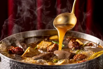 Chicken Feet / Fried Bread Stick / Needle Mushroom / Sesame Paste Noodles / Spicy Pickled Cucumber / 必點-牛肚 / 老油條 / 芋頭貢丸 6顆 / 芋頭排骨 麻辣 鴛鴦鍋 / 魚冊 / 麻辣鍋底料 / 腐皮百頁 / 酸白菜 / 餐後 甜點 / 鴨血 / 油條 / 紅油抄手 / 松阪豬肉 / 美國和牛
