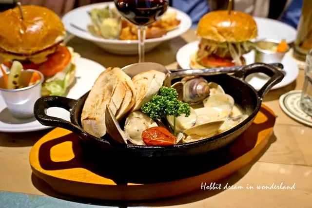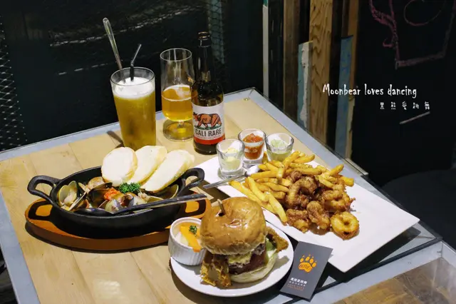 和家人二訪大安美式餐廳【黑熊愛跳舞】,位在捷運六張犂附近的美式餐廳,同時也是餐酒館,老闆是位很愛交朋友阿沙力的人,才會開這間店來廣結善緣。聽說他們這次推出了藍色海洋傳說全系列料理,瑪姬是視覺系美食愛好者,能吸引我目光就會想來試試新菜色啊!  針對夏天不僅推出新菜色,也有啤酒的優惠活動,不過切記喝酒不開車哦!這樣才能快快樂樂相聚吃美食,然後平平安安回家,才會有更多下一次的聚會。(未成年請勿飲酒/請勿酒駕)  新菜單就寫在黑板上,有排餐、有義大利麵也有燉飯。 店裡的風格帶點復古的新美式風格,有些地方活潑,但有注入了復古的元素,會吸引年輕朋友和家人聚餐,或是情侶約會。      特別注意到他們家的餐桌,是用舊式裁縫車的底座,感覺上來這裡的客人都會慣性的踩二下才過癮。 詳細菜單可點入黑熊愛跳舞 Moon Bear Loves Dancing粉絲團參考喲! 排餐、義大利麵、燉飯和漢堡皆附湯品,另外也可以加120元升級為套餐,會增加沙拉、奶油餐包和甜點。今天提供的是玉米濃湯,用杯子裝湯可以輕鬆喝,我還蠻喜歡用杯子喝湯的感覺。 玉米濃湯很熱,裡面有香甜玉米粒和洋蔥,湯的濃稠度蠻剛好的,加一點黑胡椒提味很棒!大家都很滿意。 小妞們最期待的飲品先上來,外頭炙熱的陽光讓我們身上的溫度都很高,清涼的飲料正好可以讓我們降降溫。 藍幻可爾必思藍柑橘蜜桃口味120元,藍色海洋系飲品,漸層的顏色看了就很夏天,好帛琉的顏色啊! 這款飲品主要就是可爾必思的酸甜,加上藍柑橘蜜桃的香甜,加在一起除了視覺上帶來海洋的感覺,喝起來也很沁涼甜蜜,大人小孩都喜歡。 愛琴海的邱比特藍柑橘水蜜桃口味氣泡飲140元,同樣也是以可爾思斯為基底,上面用藍柑橘水蜜桃氣泡飲,味道喝起來差不多,上面飄浮了薄荷葉和可食用的花,讓飲料看起來更出色,一樣有海洋的感覺。   我們家小妞很愛汽泡飲,看她滿意的笑容,跟這款飲品一樣,畫面讓人覺得很美麗! 黃藍旋風俠芒果藍柑橘奶昔160元,發現底下有黃澄澄的芒果果肉,靛藍的顏色也是一如藍色海洋傳說系列的視覺感受。 上面則有一大球芒果冰淇淋,喝起來綿密而充滿奶香味,也是盛暑必喝的一道飲品。 藍色夢幻IPA168元,這是一款美國啤酒,主要以麥芽、大麥和紅小麥相結合。(未成年請勿飲酒/請勿酒駕) 倒出來有著琥珀色澤,加上一些細緻的泡沫,喝起來入口有著先苦後甘的餘韻,主要是有著百香果、鳯梨、覆盆子和柑橘的香氣。(未成年請勿飲酒/請勿酒駕) 在待餐的同時店家先為我們準備上烤得熱騰騰的奶油餐包,熱熱的吃起來鬆軟又充滿奶香風味。 花枝招展蛤蠣飛舞•青醬燉飯268元,這大花枝真的很花枝招展,讓人無法忽視它的存在。 這阿根廷大花枝再配上雲林蛤蠣和松子青醬燉飯,還點綴上綠花椰和蕃茄及食用級彩色小花,看起來美味度十足!  這加入松子在裡面的青醬燉飯,味道很香,而米飯是較有米芯的口感,我自己吃起來是很熟悉的歐洲味道,反而太軟爛的口感我個人比較不愛。 這阿根廷大花枝外層裹上一層酥脆的麵包粉下去油炸至金黃酥脆,這顏色看起來很可以。 大花枝又些厚度,吃起來外層香酥,內層Q脆彈牙,鮮味十足! 華麗珍珠美人魚漢堡298元,這也是藍色海洋傳說新品系列的主打料理,看到和海洋飲品一樣的海洋藍色漢堡包,讓人胃口大開。  中間夾的重量級海鮮料有黃金魚排+草蝦+魷魚圈+鮭魚卵,再加上香草塔塔醬,是讓人食指大動的美式料理。 上回我來過這裡吃到了漢堡包留下了深刻的印象,他們家的漢堡包相當鬆軟有彈性,我很喜歡! 看看這海鮮料疊疊樂,味道有著美式風味,讓人吮指回味! 炸得熱呼呼的薯條外酥內鬆軟,沾或不沾蕃茄醬都好吃。  本來我對魚排沒有太大期待,但嚐了一口發現這魚排很酥,裡面的魚肉細緻軟嫩無腥味,難得有讓我滿意的魚排! 粉紅醬•鮭魚玫瑰花義大利麵268元,這外型也很吸引人,一大朵煙燻鮭魚玫瑰花是這道義大利麵的重點。 煙燻鮭魚玫瑰花上放入鮭魚卵相當可口。 義大利麵加了明太子和季節時蔬,再用上蕃茄紅醬和奶油白醬混合而成的粉紅醬拌炒,茄汁的味道比較搶眼融入奶香味道濃郁,麵條的口感也是偏向較有勁不軟爛,我喜歡這個味道。 這煙燻鮭魚的味道夠香,魚肉有彈性也很大片,我喜歡這個口感。 痛風炸牡蠣海鮮•檸檬奶油燉飯268元,這又是一道極品海鮮燉飯,上面對廣島牡蠣和雲林蛤蠣,滿滿的蓋住整個燉飯。  上選廣島牡蠣用麵包粉包裹住外層,咬下去香酥而又充滿海味,喜歡牡蠣的鮮嫩口感一定不要錯過。  而這個用檸檬奶油醬做的燉飯,口感同樣帶有米芯,不過他的檸檬味道淡雅,反而在吃蛤蜊當中感受到更明顯的檸檬清新香氣。  黑熊愛跳舞無論是排餐、義大利麵、燉飯或漢堡都有水準的演出,不妨利用夏季新品的推出,去嚐嚐美味的料理! …Read More