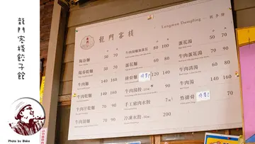 《龍門客棧餃子館》是台北知名的排隊水餃店,許多台北水餃排行榜報導也一定有它,而且很特別的是只有晚上才有營業,一到了夜裡《龍門客棧餃子館》可以說是熱鬧非凡,來過的人都知道想吃都要先排隊,很多人都說餃子是必點的,但也有人是說滷味才是本體,但吃過或沒吃過的你覺得《龍門客棧餃子館》真的好吃嗎?龍門客棧餃子館《龍門客棧餃子館》就在林森南路的巷子裡面,在台大醫院附近,旁邊都是台大醫學院的教室體育場或宿攝之類的,較近的捷運站是捷運善導寺站、台大醫院站跟東門站,除了善導寺站走比較快一點大約10分鐘的路程外,其餘兩站大約都要走個13~15分鐘,《龍門客棧餃子館》營業時間跟一般麵店不同,是從傍晚5點開始營業,一路賣到晚上11點,中午是不開門的。《龍門客棧餃子館》算是台北還蠻有人氣的餃子店,講到台北餃子之前有吃過巧之味跟北大荒都沒有自己的特色,《龍門客棧餃子館》已經開業超過一甲子了,從門口以為是一間小小的水餃攤,走進去後才發現別有洞天,木造建築配木桌板凳還有牆上泛黃照與書法,會有一種果然是客棧的想法,來這就先排隊點餐在入內,如果裡面有空位,就一人排隊其它人先進去。龍門客棧餃子館菜單價格龍門客棧餃子館菜單就如同一進門的價目表,除了招牌豬肉水餃外,另外還像是陽春麵、牛肉麵與排骨麵等等,但近期排骨麵似乎都停售,豬肉水餃一顆7元、牛肉麵在140元,台北麵店現在似乎也都是這樣子的價格,大多數都會推薦《龍門客棧餃子館》的滷味,只是這邊都是現切沒有價目表,想吃什麼想知道多少錢就直接跟阿姨說。水餃 NT$7元《龍門客棧餃子館》水餃一顆7元,如果在早一年吃的話,老實說以豬肉水餃的價格來看,哥會覺得有點貴,但在萬物齊漲的年代裡面,哥竟然出現7元價格好像很便宜的價值觀錯亂,每一顆水餃看起來都很飽滿,而且今天看到的都沒有破皮,初步看起來是及格的,在櫃台邊有蒜頭可以自行拿來配水餃,邊撥蒜頭邊吃水餃跟整個氛圍真的有一種客棧感。第一口咬下去水餃感覺很像是在吃小籠包,湯汁還蠻多的,感覺還蠻爽的,內餡部份是包豬肉麗菜,但是有一點鬆散,比較沒有那麼的紮實,湯汁的來源我在猜應該是煮水餃的湯進去的,皮薄帶勁還不錯,看網路上有些分享說水餃還好會不好吃,內餡口感真的還好,然後辣油也是還好,可是那個湯汁是我有好感,或許是時間關係而讓水餃不一樣,建議趁熱吃。牛肉麵 NT$140元牛肉麵就算了,油感真的太重了啊!帶點微微的辣度的紅油雖然讓整個牛肉麵吃起來更重口味一些,但感覺是破壞原本甘甜的湯頭,紅油下的太多了,麵條也還好,但牛肉算是可以帶一點筋感,卻不會太韌。涼拌小黃瓜 NT$40元小黃瓜看起來紅通通的,但吃起來其實不辣,脆度我覺得也還好,對了即使再淋上店內辣椒油,一樣一點都不會覺得辣,哈哈哈哈哈。滷味 NT$270元很多人都很推薦《龍門客棧餃子館》,但應該也很多人都跟哥一樣,結帳時才驚覺怎麼那麼貴,哈哈哈,切一顆滷蛋要20元,豆皮要50元,豬腳要100元,整個切下來就270元,佔餐費的一半,本來想說結帳應該是400多吧!結果要520元,都貴在滷味上。他們家滷味是走冷滷處理,主要就是看味道有沒有吃進去,點了一份滷蛋、海帶、豆皮、豬耳朵跟豬腳,豬腳是直接切成片狀的,肉質口感都還不錯,吃起來不會太乾,豆皮的味道也是有吃進去,並不會太重,豬耳朵脆度反而覺得還好,但整體來說味道並沒有期待中那麼厲害,但有看到朋友說帶回家冰之後再吃味道會更好吃,只好下次看看。要來《龍門客棧餃子館》前還蠻猶豫的,因在網路上的評價並不是很好, 只有3.8分,很多人都說滷味貴、水餃普或者是服務態度差,服務當天感受是好,排隊時就先請我家布老大跟蔡小小小姐先進去,還蠻友善的,再來滷味貴是確實,結帳都會驚一下而且滷味偏普,然後水餃當天是不錯的,但也有可能是品質不一,有些人覺得不好,或許不排隊時可再來試試看。查看更多
