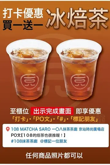 來自日本北海道的抹茶甜品專門店「一〇八抹茶茶廊」,嚴選珍貴的京都宇治抹茶為基底,現場新鮮製作各式高品質甜品。近日推出許多焙茶甜品品項,因焙茶有一種特別的濃郁香氣,製作成的焙茶飲品或焙茶甜點,都相當地迷人。這次品嚐到的新品有醇茶三重奏大判燒、焙茶蕨餅、焙茶蕨餅冰拿鐵及焙茶漂浮冰沙,都相當推薦!一〇八抹茶茶廊京站時尚廣場店在2015年開業,從剛開幕,就一直是艾方妮與閨蜜很喜歡的抹茶甜品店,位於京站B3,交通很便利,因此一直是相約小聚的好地方。這次得知一〇八抹茶茶廊的不可思議,覺得很有趣,想跟大家分享一下:一〇八抹茶茶廊的產品琳瑯滿目,固定提供的就有40多款甜品,不時還會推出新商品。現場看著大判燒製作的過程,實在太療癒!更是不容錯過的散步點心。一〇八抹茶茶廊的大判燒買五送一,並可以裝成一個禮盒,當成伴手禮是不錯的選擇。茶具/新茶系列一〇八抹茶茶廊積極推廣茶的系列講座,並在現場販售茶碗、茶筅、茶筅座、茶罐、抹茶粉、含莖焙茶葉(籌備中)、有機抹茶玄米茶(籌備中),讓消費者聽完講座後,也可成為有品味的好茶專家。跟手搖飲品一樣,也可以在各類飲料依照自己的喜好自由選擇再加料:抹茶蕨餅20元/份、杏仁豆腐20元/份、抹茶果凍20元/份(板橋環球店不提供)、黑糖果凍20元/份(板橋環球店不提供)一〇八抹茶茶廊-抹茶焙茶蕨餅(綜合)$200/24個焙茶蕨餅在早期,蕨餅的做法是把蕨菜的根挖出來後曬乾再磨成蕨粉,最後加水加糖才能完成。由於做法十分費工更顯得珍貴,在日本古代只有皇家貴族和顯貴人家才吃的到。一〇八抹茶茶廊嚴選靜岡県産焙茶為基底,製作香味濃郁的焙茶蕨餅,味道優雅芳香。一〇八抹茶茶廊-抹茶焙茶蕨餅(綜合) $80/8個除了單口味,也可以選綜合品味,就能一次嚐到抹茶、焙茶兩種口味。這軟Q精緻的點心,微甜且低熱量,真是令人好喜愛!蕨餅除了單吃,也推出與飲品的結合。在杯內放入切成細塊的生蕨餅,加入牛奶。一旁備有焙茶粉,沖入熱水。此次推出的冰拿鐵,加入現刷的無糖抹茶及焙茶,迷人的茶味清爽撲鼻。更加入生蕨餅,讓喜愛蕨餅的老饕,也可吃到蕨餅與飲料搭配非常對味。此外,可選擇牛奶或豆漿,對於乳糖不適的人可以輕鬆舒適地享用。現刷的無糖焙茶,刷散後倒在加了冰塊的牛奶之上。一〇八抹茶茶廊-焙茶蕨餅冰拿鐵 $120/中杯焙茶是將煎茶、番茶或莖茶以大火焙炒至茶葉成褐色,並散發出香氣為止。焙炒過程中苦澀來源的兒茶素會受到破壞,因此比起其他茶種品嘗起來更為清爽,亦有一股獨特香氣。同時因為高溫使咖啡因含量相對減少,也很適合老人或小孩飲用。將焙茶製成拿鐵後,多了牛奶的香濃,口中又多了生蕨餅的咀嚼感,濃郁中帶著清爽,典雅的滋味。而抹茶蕨餅拿鐵的做法,也是當場現刷抹茶。一〇八抹茶茶廊-抹茶蕨餅冰拿鐵 $120/中杯牛奶的濃香中和了微苦的抹茶,咬到抹茶的生蕨餅多了樂趣,口中抹茶的尾韻相當高雅。在抹茶或焙茶的外皮中,放入卡士達內餡。烤得差不多時,再放入生蕨餅。剛烤好的大判燒,裡頭的卡士達醬立刻爆漿,真的太誘人了!一〇八抹茶茶廊-抹茶三重奏大判燒 $55所謂的三重奏就是外皮、蕨餅到內餡卡士達,都是同一種口味。外皮的酥脆、卡士達的香滑,還有生蕨餅遇熱後,產生類似麻糬的軟Q,三種不同的層次,還有抹茶該的有茶香馥郁,真是令人大大地滿足!一〇八抹茶茶廊-焙茶三重奏大判燒 $55焙茶外皮、焙茶蕨餅、焙茶卡斯達,完完全全的焙茶,卻富含了店家的用心,結合焙茶的特色,輕鬆嚐到日本風味的點心。天氣熱的時候,總會想吃冰沙,又想著吃霜淇淋,一〇八抹茶茶廊幫我們解決了這個苦擾。一〇八抹茶茶廊-焙茶漂浮冰沙 $130/中杯從第一次吃一〇八抹茶茶廊的霜淇淋,就愛上他們家的焙茶霜淇淋,其濃郁的焙茶入口會有吃到芝麻香氣的錯覺,入口後焙茶深厚的味道才慢慢散發出來,那個低調華麗的味道很得令人喜愛。底層是焙茶冰沙,純粹的焙茶香氣,融合了霜淇淋的奶香及香甜,完美的比例創造出清涼的口感及滋味。…查看更多