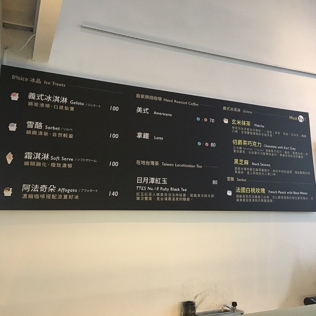 趁著難得的好天氣,來到永康街拜訪水桶阿姨新開幕的飾品店(請大家多支持),順便呷個冰那既然到了永康街,不朝聖一下芒果冰始祖"Smoothie House-思慕昔"~好像就是哪裡不對勁但在看到門前滿滿的排人潮,唉~嗯~我想~還是改來去吃空間感超時尚的『8%ic冰淇淋專賣店』帶有工業風的內用空間,讓吃冰淇淋這件事變很時尚具設計感的高腳桌&凳,坐在這兒呷冰、再配上流行音樂~厚~享受呀!!!只不過凳子很輕、桌子也不重,一不小心就桌斜凳要倒的,大家要注意另外~太勾椎啦,小朋友專用椅!!!默默擺在樓梯底下,還好我眼尖看到拿來給快擠霸公分的張翔翔坐嘟嘟好!再來萬一冰淇淋吃多了嘎冷筍,點餐櫃台旁有提供溫開水!各位請自取~像這小孩就為了要吃很多很多~想出一口冰淇淋、一口溫開水的招數,強!提供的冰品種類有四種:義式冰淇淋、雪酪、霜淇淋、雪糕,另外還有幾款咖啡及茶品而我老公對「拿鐵」是歐漏尬ㄟ大機,不焦、不苦不澀,奶泡又很綿密,直說一杯$70的C/P值超高點餐櫃台前會有比較完整的冰淇淋口味List,但個人愛直接到冷凍櫃看會比較有臨場感冰淇淋如果不知道要選什麼口味的話,不妨參考Must Try的推薦口味!冷凍櫃裡的〈義式冰淇淋〉及〈雪酪〉,想好要什麼口味之後,就可以直接到後方櫃台點餐我們很大手筆的吃了三種口味:熱帶水果義式冰淇淋、青森蘋果雪酪、綜合柑橘雪酪但說實在的,醬樣小小一杯要NT$100真的是還蠻不便宜的,好加在是口感還蠻紮實的,吃多也是會飽!那「義式冰淇淋」的口感屬紮實綿細、「雪酪」則像是半固態狀的Cream,後者非常適合給小孩吃~選擇的三種口味都還不賴,綜合柑橘酸甜的夠味、青森蘋果則是優雅的蘋果香、熱帶水果就剛好介於中間另外超漂亮的〈雪糕〉,在點餐之後才會裏上外層巧克力及配料,頗具噱頭的一隻枝仔冰!!!!巧克力雪糕本體的巧克力不會太甜膩,裏上的巧克力外層也是不會太甜配上中間夾層的黑醋栗果肉以表面的棒果,其實挺好吃的,只是真的就還蠻貴的查看更多