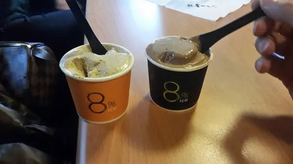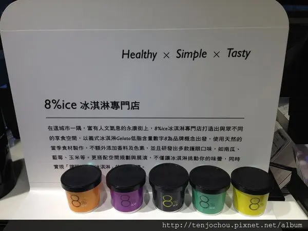 認識這家店全是因為我的instagram好友 (哈哈, 這年代才來愛網上交友 XD Henry介紹的我猜他可能在這家店附近工作吧, 看他早陣子幾乎每天都會post這家店的冰淇淋上instagram. 也幾乎每天都吃不同口味, 讓我超想一試! 這家店又好幾家分店, 我就去了永康街附近的本店說是冰淇淋店, 他們有硬的意大利冰淇淋 (gelato), 也有霜淇淋當天是星期六下午, 人好多, 但也細心的選要吃那一款, 因為, 價錢不便宜, 所有款都要100NT店內也有不少的藝術擺設, 在等或在吃的時候可順道欣賞一下.還有diptyque的蠟燭, 不過就不知道是裝飾還是可以給客人買了冒著被人一直撞來撞去的情況下也要拍他們的口味給你們看 XD 超多特別的口味,所以就真的想了好久之所以叫做8%, 是因為意大利的gelato脂肪含量只有8%, 所以店以此命名. 他們的冰淇淋都是主打健康, 成分全天然, 加上店內的藝術作品, 讓大家的咀巴跟眼睛都吃冰淇淋想要一次過吃多款口味就最好點綜合的~ 霜淇淋部分我想吃抹茶, 看到雪鹽黑糖二話不說點了霜淇淋本身不會太易溶化, 因為都拍照拍了好一陣子. 抹茶沒有我想像中的甘, 但最起碼他沒有和茗的甜, 也是不錯. 雪鹽黑糖超好吃的! 黑糖的味道很突出, 但又不會過甜, 雪鹽的鹹剛好帶起了黑糖的味道, 推薦這口味, 真的好吃呢gelato部份點了藍莓芭娜娜, 還有黑芝麻. 兩款吃起來都沒有霜淇淋的那種軟滑感覺, 味道也比較清新一點. 芭娜娜其實就是香蕉口味啦, 加入藍莓的酸出奇地搭耶, 很不錯, 香蕉味道很天然, 愛吃香蕉的一定會喜歡~ 黑芝麻本身我沒有很愛吃, 是男友選的,味道有很濃郁的黑芝麻味道, 也不會太甜, 都不錯…查看更多