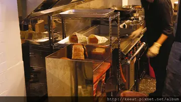星期一快中午的時侯跑到晴光市場本來想去吃十巷咖哩的但到的時侯突然看到在十巷咖哩斜對面新開了一家店就是這家A婆古早味炭烤三明治什麼時侯有這家的?上次來還沒有呀上網查了一下上個月底才開的呀而且還是碳烤吐司呀二話不說馬上決定吃這家了XD旁邊這路標好可愛上面都是吃的呀XD看了一下價格比一般的碳烤吐司貴了一些不過上面寫了是三片吐司所以份量應該是大了一些還有飯類這點倒是少見香煎肉排跟炸物厚切豬排老K都想吃呀看了另一邊的MENU之後老K決定了點香煎肉排三明治因為炸物厚切豬排可以單點呀XD結帳之後拿到號碼牌老K又是1號XD不過也還好是1號因為這裏只有二張桌子很容易就沒位子坐呀坐在位子上看著窗口等餐XD 旁邊有寫著他們的堅持現在開店好像都要這樣旁邊這個小火爐好可愛因為肚子很餓所以去跑到窗口看一下XD真的是用碳火烤吐司呢古早味紅茶(30元)、香煎肉排三明治(88元)古早味紅茶一般都是紅茶加麥茶不過他們應該還有加點決明子味道算是滿濃郁的雖然一個碳烤吐司88元比一般貴了一些不過他們家用的是厚片吐司而且還三片老K覺得老闆烤吐司的技術相當不錯用碳火烤很容易焦呀但他們家外表看起來相當的漂亮用手拿起來還滿重的看來男孩子要吃飽也是沒問題的上面這層放著肉排、起司跟蛋下面這一層則是高麗菜絲跟沙拉他們家吐司吃起來相當的柔軟而且有彈性外表碳香但又不會烤太乾搭配著有咬勁不柴的肉排跟蛋香、奶油香還有爽脆的高麗菜絲跟滑順不油膩的沙拉整個口感相當的豐富尤其肉排在咀嚼後還會有醃製過的鹹香味算是相當不錯的碳烤三明治如果只看價格不算便宜但吃完之後有飽足感就不覺得貴了吃完之後又跑去看一下炸豬排好了沒XD老闆娘說油溫還不夠要等一下老闆忙著製作別人的三明治生意滿好的回去位子上等一下好了炸物厚切豬排(98元)因為他們家都是以外帶為主所以拿到的時侯老K有點嚇到很像在外面買炸雞排用紙袋裝上面還有塗上面醬本來老K以為是咖哩醬之類的結果上面那一層醬是酸酸甜甜的味道好像是蔬果醬之類的他們家炸豬排吃起來是比較硬脆的麵衣吃起來也是有咬勁但不會柴豬排的厚度比肉排厚了一些所以吃起來更加的飽口上面的醬汁讓炸豬排比較不油膩酸酸甜甜的味道清爽不少哦不過老K覺得單點炸物厚切豬排貴了不少呀因為再加10元就能升級三明治了啦XDK的小叮嚀:碳烤三明治又出現有力的生力軍了 雖然有點小貴但份量十足 相當適合男生來享用 不管是搭配肉排或是豬排都不錯吃 怕罪惡感的朋友建議點香煎肉排三明治來吃 不怕的話就點炸厚切豬排三明治來吃吧XD 比較不建議像老K這樣單點炸厚切豬排 因為比較不划算呀 他們家跟一般碳烤吐司比較不一樣的是11點才開始營業 不過營業到晚上八點半 所以走的是午晚餐的路線 想要吃的朋友要記一下時間 不要一大早跑來吃呀XDK的私評(滿分10分越高越好) 美味:8.1分 CP值:8分用餐環境:6分價格:7分A婆古早味炭烤三明治粉絲團:A婆古早味炭烤三明治 (有預定的問題請參考粉絲團)地址:台北市中山區雙城街10巷8-3號電話:02-2595-6148營業時間:11:00~14:00 16:30~20:30(星期日公休)查看更多
