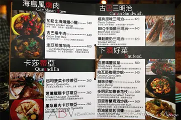 店家資訊:ABV Bar&Kitchen 世界精釀啤酒加勒比海 餐酒館二店 地址:台北市大安區忠孝東路四段216巷19弄11號電話: 02-27216997營業時間: 12:00pm~1:30am地中海 餐酒館一店 地址:台北市大安區光復南路260巷39號電話:02-87718114位於東區216巷內的"ABV Bar&Kitchen 加勒比海餐酒館",是一家極富中南美洲及異國風情料理的餐酒館,融合殖民時期歐洲及中南美洲料理方式,及加勒比海料理可以稱為是美食聯合國的餐廳在這裡你可以品嚐世界的精釀啤酒,同時也可嚐到熱情加勒比海獨特異國風情早午餐,給大家不一樣的味蕾饗宴,今天大家就來一起品嚐看看吧!!!! 鄰近捷運忠孝敦化站,從3號出口走來,只約需5分鐘的時間,地理位置相當便利!!!近期店家推出深具異國風情又大份量的"早午餐"(共15種選擇)通通只要$290+10%大洋,大份量的精緻餐點,讓大家早午餐可以吃飽飽!!!戶外大約有25~30個座位左右不少外國人非常喜歡戶外座位,感覺真有種到國外用餐的fu~~~店內充滿加勒比海的異國風情,這讓我想到神鬼奇航中的傑克船長,牆壁上有船上的觀景窗,真有種在海盜船上的感覺室內大約有50個座位左右,活動空間很大,店內也提供包場活動,詳細請問店家!!!!船槳.海盜標誌.及充滿異國風情的藤椅,同時,還播放充滿中南美洲風情的音樂,感覺真是熱情萬分!!!店內充滿許多航海.海盜的元素,我非常喜歡,感覺活潑.熱情!!!用餐起來,氣氛也很歡愉!!!裡面另外間隔出一間,感覺有不同用餐氛圍店內還有一台瓶蓋壓蓋機,老闆因為是學機械科系,所以自己打造出世界僅有的機器(據說是世界第二台)來這裡,也可以壓個瓶蓋,做個紀念各式各樣的瓶蓋,可以當作裝飾相當可愛!!!!ABV 就是ALCOHOL BY VOLUME 酒精濃度的縮寫。ABV BAR&KITCHEN 終極目標要成為精釀啤酒餐廳界的領導品牌。店內隨時提供來自德式、美式、英式、比利時等..超過300種的精釀啤酒。同時,每週會更換30~40種啤酒款式大冰箱內還有更多如荷蘭、希臘、奧地利、法國、南非、匈牙利等…超過20個國家的啤酒。開店至今,已引進過超過3000種以上的精釀啤酒。(提醒:未滿18歲,請勿飲酒,喝酒不開車 ; 開車不喝酒)MENU 網路版 (請點我)*店內酌收10%服務費*早午餐統一 $290+10% (每天供應至下午四點),隨餐附英式紅茶/美式咖啡*菜色有:沙拉.古巴三明治.卡莎蒂亞.Tapas.海島風燉肉.加勒比海烤肉.串烤.炸物.主食.千層麵.湯品.冷下酒菜.甜點*套餐:3~4人分享餐.5~6人派對餐.7~8人轟趴餐*店內有軟性飲料.及比利時.德國.美式.英式的精釀啤酒(桌上附有酒單)點早午餐系列,均隨附一杯英式紅茶或美式咖啡英式紅茶(冰)為無糖的,隨杯附上糖漿,可自行調配甜度紅茶香醇爽口,也不會澀口,甘韻好喝美式咖啡(冰)口感香醇芬芳,咖啡香氣瀰漫,也可自行調配甜度!!!卡莎蒂亞早午餐 $290+10%卡莎蒂亞(起司菠菜).炒蛋.玉米片.莎莎醬.凱薩沙拉卡莎蒂亞是西班牙文對起司的暱稱,是一道經典的墨西哥主食,將墨西哥薄餅對折後包入起司和各種不同的佐料,總共有三種口味可選擇今天我們選擇"起司菠菜",是道蛋奶素餐點墨西哥餅皮Q軟有嚼勁,裡面的起司很濃郁,菠菜清新爽口,整體走健康.清爽的路線不喜歡早餐吃油油膩膩的朋友,很推這道玉米片很脆口,ㄎㄠㄎㄠ的口感,感覺是討喜的小零嘴,搭配一些莎莎醬,風味很獨特莎莎醬充滿酸甜口感,新鮮的番茄丁及紫洋蔥丁,酸度很夠,整體很清新.自然凱薩沙拉,蘿美生菜.紫高麗菜,撒上碎培根,淋上酸甜凱薩醬,搭配一些新鮮時蔬沙拉,感覺營養也均衡炒蛋相當軟嫩,撒上些許胡椒提味,雞蛋很新鮮,不會有蛋腥味,新鮮嫩度也足這一份,很推薦喜歡輕食口味的女性朋友品嚐!!!!加勒比海燉肉早午餐 $290+10%燉肉(燉肉丸).炒蛋.玉米片.烤玉米.凱薩沙拉以馬鈴薯.紅蘿蔔燉煮雞肉丸,雞肉丸吸附了飽飽的醬汁醬汁以百里香.俄立岡蘿勒.芫荽.椰汁.蔥.青蒜.孜然.跟咖哩,經過慢火細心烹調烹煮而成搭配一些馬鈴薯及紅蘿蔔,燉煮至軟綿適口,隨附的法國麵包,上面澆淋一些橄欖油後,沾附一些醬汁,十分美味可口雞肉丸紮實有Q勁,醬汁均已入味十足,雞肉使用獨家秘方醃漬後,搓揉成球狀,再以慢火燉煮,充滿濃濃的島國風情料理尤其醬汁好香,有濃郁的孜然及咖哩香氣烤玉米也很清甜,香氣十足,搭配炒蛋及時疏,豐富的一餐,可以吃飽飽燉雞肉丸是哥倫比亞的菜式斑點公雞遇上火烤肉串 $290+10%火烤肉串(豬肉串).黑豆飯.炒飯.玉米片.凱薩沙拉我覺得很特別的是,黑豆飯充滿濃濃的異國風情,以黑豆拌炒米粒,加入眾多辛香料,我聞到茴香跟孜然的香氣,米粒是細長條型的香米飯,富有口感及嚼勁,但也有濕潤度,所以不會乾口黑豆有蜜漬過,淡淡的甜味,尤其米飯經過烹調後,越嚼香氣越散發出來,搭配旁邊的新鮮鳳梨,感覺清爽又解膩,滋味很不一般,以前從來沒嚐過火烤豬肉串兩大串烤肉串,豬肉很鮮嫩可口,外層刷上鹹甜又香氣十足的烤肉醬,以火烤烤製,豬肉的肉質很紮實,帶一點油脂,口感豐富美味早上來串烤肉串,感覺很特別,也覺得活力十足,補足滿滿的元氣古巴三明治早午餐 $290+10%古巴三明治(燻鮭酸奶).炒蛋.玉米片.莎莎醬.凱薩沙拉重現電影五星主廚快餐車的經典美味,選用義大利的巧巴達,再將燻鮭.起司.酸黃瓜一起壓入燻鮭很鮮嫩,搭配香滑起司及新鮮洋蔥,搭配起來好好食,燻鮭與洋蔥完美搭配,些許嗆辣的生洋蔥,將燻鮭的美味,提升出來可搭配一旁的酸奶醬,滋味更是不同凡響,而且足足