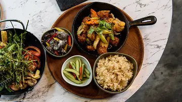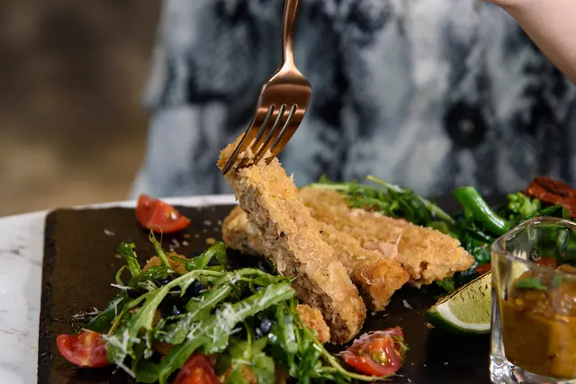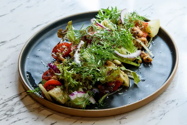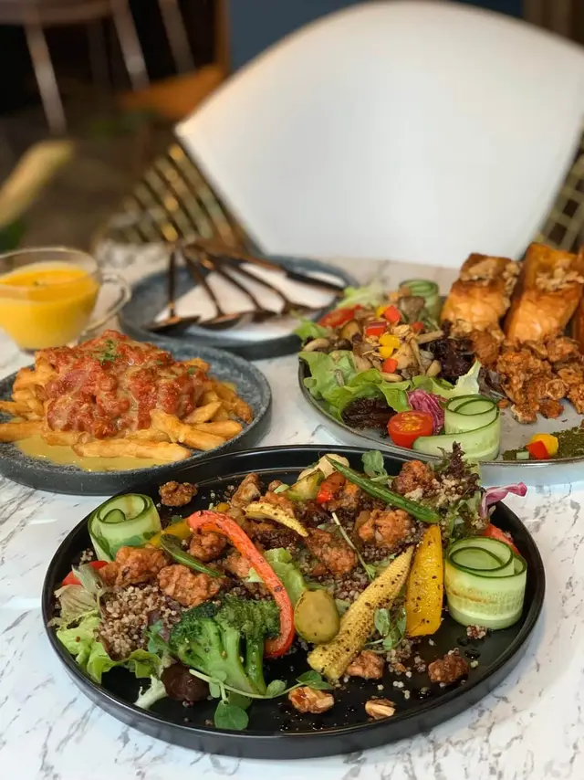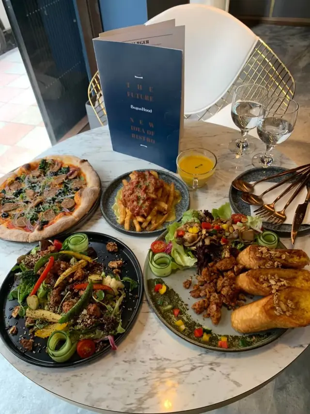 我是個無肉不歡的肉食主義者,沒想到也會被【BaganHood 蔬食餐酒館】圈粉了~【BaganHood 蔬食餐酒館】是以「無蛋、無奶、純植物性」為出發點,打造"vegan"的純素餐廳,也是台北第一間蔬食餐酒館,也可以說是為「葷食主義者」而開的純素天地,用未來肉圈粉肉食愛好者,店裡常常出現高朋滿座的盛況,真的很厲害!【BaganHood 蔬食餐酒館】位於信義區巷弄裡,鄰近松菸,捷運市政府站一號出口步行約6分鐘即可抵達,附近有收費停車場,交通便利!走進店裡讓人有滿滿的驚喜感,完全跟素食聯想不起來的餐酒館氛圍與規格,顛覆我們對於蔬食餐廳的刻板印象,而且店內空間相當寬敞,很舒適!店裡還有個純素小超市,商品琳瑯滿目,販售純素飲品、起司、植物肉、保養品、醬料等,是素食主義者的天堂,可以盡情地參觀選購【BaganHood 蔬食餐酒館】菜單及價格料理選擇豐富,不定時會更新菜單,就跟一般的餐酒館一樣,有開胃菜、披薩、沙拉、早午餐、漢堡、甜點及飲料等,低消$200元,需加收服務費10%薄荷香料堅果醬、小黃瓜、蘋果、鳳梨、風乾水果乾、番茄、蜜核桃、薄荷葉 $350【BaganHood 蔬食餐酒館】的餐點很特別,沒有特別取名,而是將食材列出來,這盤沙拉一端上桌就讓我充滿驚喜,擺盤好美啊,先不論口感味道,光看到美麗的擺盤就讓人覺得心情好啊!很大一碗,滿滿的小黃瓜、蘋果、鳳梨、風乾水果乾、番茄、蜜核桃等料,再佐以薄荷葉點綴,因為含有大量的水果所以吃起來香甜,有別於常見的沙拉醬料,薄荷香料堅果醬也意外的特別合口,每一口都讓人好滿足,如果你也喜歡吃水果但沒有很愛沙拉,推薦可以點來品嚐!未來肉腸、青醬、小番茄、黑橄欖、檸檬油 $420來【BaganHood 蔬食餐酒館】推薦必點使用義大利藍光麵粉及天然酵母發酵的麵糰搭配美國Daiya起司烘烤的披薩,如果你也喜歡有肉的口感,這個未來肉腸可以滿足你!披薩餅皮很香,很Q很有嚼勁,以往吃披薩時我都會很不好習慣的留下最後端的餅皮,這個我可以全部吃光光,整個披薩滿滿的餡料,除了未來肉腸,小番茄、黑橄欖等舖滿整個披薩,風味鮮明的青醬更散發著其迷人的自然清新香氣!米蘭炸新豬排、芝麻業、芒果酸甜醬、時蔬 $430來到餐酒館當然少不了排餐,【BaganHood 蔬食餐酒館】也有提供主廚排餐,排餐擺盤精緻,香酥的炸新豬排,如果不說,光看你一定不會知道這是純素料理!使用的是從美國進口的「OmniPork新豬肉」做變化料理,所謂Omnipork新豬肉是以全植物性材料製成的純植物肉,口感風味極佳,無論外觀及口感都讓人不禁疑惑這真的是純素嗎!?豬排可以依個人喜好搭配芝麻葉或是芒果酸甜醬入口,享受吃排餐的美好!一旁搭配的黃檸檬、風乾番茄以及蘆筍,風乾番茄口感偏鹹,但可以去油解膩、刺激味蕾!泰式奶茶 $180沒來【BaganHood 蔬食餐酒館】也可以喝到泰式奶茶耶,很別出心裁的上桌手法,玻璃杯裡為泰式紅茶冰凍而成的冰磚,提供的是植物奶,可以選擇燕麥奶或是堅果奶,我們選擇的是燕麥奶喝之前將熱騰騰的燕麥奶倒入紅茶冰磚裡,過程有點療癒,攪一攪,有別於一般的泰式奶茶,口感清爽、不甜膩,順口好喝,是一杯好看且好喝的飲品!黑糖玫瑰鹽拿鐵 $180餐後跟我一樣愛喝咖啡的,來到【BaganHood 蔬食餐酒館】也不會失望,有美式、有拿鐵及義式泡沫咖啡等可選擇,這杯黑糖玫瑰鹽拿鐵質感真好,杯子特別的美,咖啡也特別的香,黑糖及玫瑰鹽讓拿鐵香甜不膩口,喝一口滿滿的幸福感油然而生太妃糖肉桂捲 $220其實我沒有很愛肉桂的香氣,但這個太妃糖肉桂捲成功的擄獲我心了,端上桌時肉桂捲還是熱的喔,肉桂捲用手工熬製太妃糖與黑糖製作而成,肉桂香氣逼人,搭配的是豆奶口味的冰淇淋,吃的時候可以肉桂捲搭配冰淇淋入口,冰熱口感相當特別,這裡的肉桂捲特別的軟Q,口感特別好!目前在地下一樓的空間還有舉辦"手繪個展",可以下樓參觀,風格幽默有趣!很用心且很有質感的台北全素餐聽【BaganHood 蔬食餐酒館】,顛覆以往對於蔬食料理餐廳的看法,無論你是不是蔬食主義者都可以來吃看看,應該也會跟我一樣一吃就愛上!…查看更多