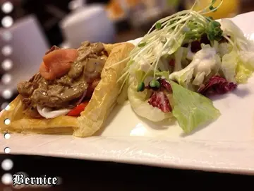 吃過BUTTER就難忘它的好滋味,一直想再去吃一次剛好這次抽到的『BUTTER 法式輕食餐廳 』 (萬聖節到了,首圖放張蜘蛛同樂一下) 位於台北市東區地下街-12號出口(大安路) 剛好在頂好市場的對面門口有擺放個小桌子,上面擺放著可愛的裝飾品和MUNE(早午餐,可麗餅,法國菜,義式餐點)可以先參考一下,覺得餐點不錯,就進來吧! 一進大門,左邊是結帳櫃檯和小黑板 右邊的等候區有張沙發可坐坐櫃台的對面放著張小桌.上頭則佈置著慶祝著萬聖節的南瓜和蜘蛛裡頭也裝飾著慶祝萬聖節的鬼玩意(嗚呼~我愛) 桌椅擺設不會使走道過於擁擠,提供了很舒適的用餐空間店內牆面均為落地窗,累了還可看看窗外的車水馬龍(繁華世界)MENUBUTTER 法式輕食餐廳:法式經典餐點,雙人免費體驗!BUTTER經典早餐洋蔥炒蘑菇,培根香蕉,薯條,沙拉,德式香腸,火腿 早餐加上一碗生菜沙拉,吃多了也不會覺得有負擔 培根香蕉(說不出的口感)很有創意的新吃法,至於好不好吃見仁見智火腿鹹度適宜德式香腸也很脆口 特選早午餐(皆附柳橙汁一杯)香醇蕃紅花海鮮焗飯 (孕婦忌食) 這裡的海鮮飯是採用生米下去熬煮的,口感偏硬(我喜歡吃軟飯,店家很親切的為我們重煮了一份)黃澄澄的焗烤飯,翻一翻,海鮮料還蠻多的,食材也很新鮮(奶香味濃)可愛的蝦子,飽滿脆口,沒有腥味 再來就是甜點上桌法式甜薄餅香蕉,草莓,水蜜桃,榛果巧克力醬,核桃仁,巧克力醬,巧克力冰淇淋店家巧妙的運用水果的色調和巧克力醬汁,搭出華麗的外觀 法式薄餅口感偏軟,稍甜,不適甜的我吃來有點不習慣 美式咖啡(很少喝到咖啡這麼熱騰騰的,還冒著煙呢(棒)),老妹說順口好喝 拿鐵 奶泡打得很細緻,也很燙口,喝來不酸澀(我尬意) 順勢放上一訪時吃的(食記請點***)法式鮭魚酥皮方盒子 最底層是酥皮放上一些蔬菜再加上一些蘑菇醬.水波蛋和燻鮭魚旁邊放上一些沙拉 烤牛肉墨西哥捲餅皮很酥脆,餡料味道甚好這裡的服務態度很親切,不曉得是不是太過謹慎,出餐速度稍慢(一訪時則不會) 餐點和服務皆很滿意(尤其是熱騰騰的咖逼)回訪機率高以上是我的食用觀感,在此提供您參考BUTTER 法式輕食餐廳…查看更多
