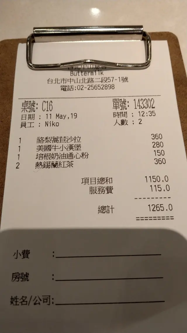 Buttermilk (台北) 網址: https://s.openrice.com/cHRSm027FO600 地址: 台北中山區中山北路二段57-1號(台北中山意舎酒店1樓) 電話: +886 +886225652898