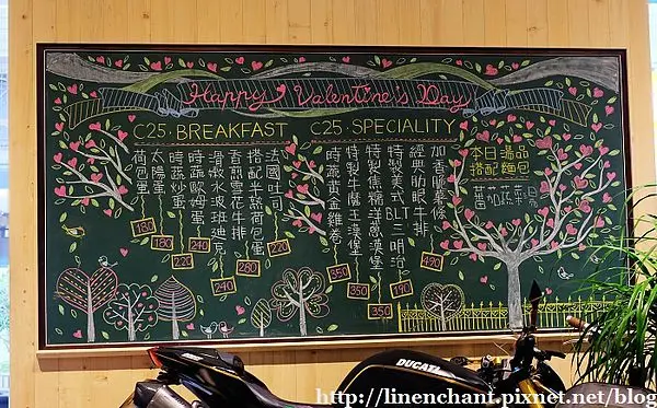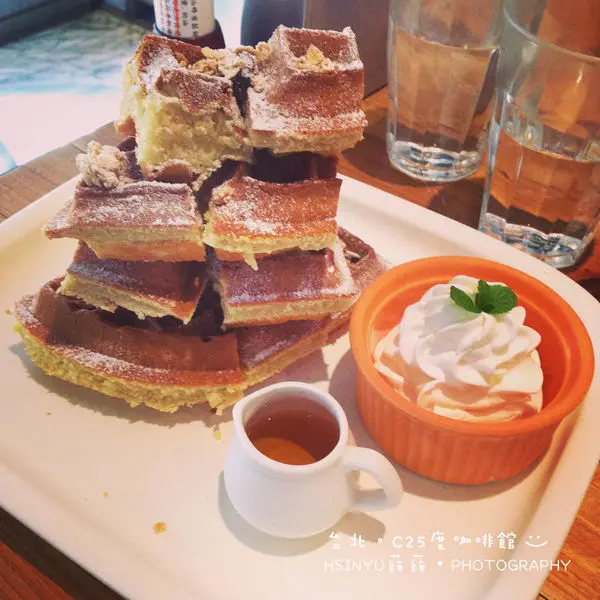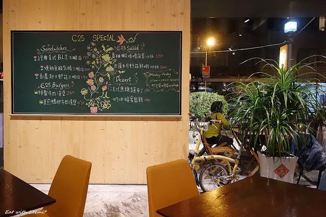 盡信書不如無書,是吧台北東區傳說藝人的愛店「C25度咖啡館」或許當我是藝人的時候就會曉得這家歷史悠久C25 cafe的魅力現在我這麼小咖,沒吃到漢堡還是快閃吧~Free wi-fi、部分插座、可預約、不限時、禁外食早起的鳥兒,肯定吃得到啊ps. 元旦補假那天生意爆炸好的說By learning one learns how to learn. Well, you could find a lot of brunches in Taipei City. Today, my friends and I came here for around 4 hours. Their brunch was OK with the reasonable price, especially near MRT Zhongxiao Dunhua station, 5 min by walk. They also provide free wi-fi, some socket (only for laptop) and w/o time limit to sit. I have to say I definitely get another better choice from C25 cafe.當初選擇「C25度咖啡館」是有個原因..理想時光師傅做獅子頭辛苦了,想公休緊急將討論場地換到C25,地點方便就鄰近捷運忠孝敦化不限時間、free wi-fi、部分座位有插座、有服務費、可預訂情況下就衝了果如其然,地點非常方便,而且這價位老實說我應該不要再挑剔老實說環境還不賴,除了..我的MacPro不爭氣插座實在塞不下唯一可用的那一位只能默默用到電腦沒電這樣想喝水得自己找服務人員加..最後口很渴XD收餐盤速度很快,但是加水要自己開口就是想喝,大聲詢問就是,別害羞餐桌設計其實整體不太好移動,或許也是原因之一用餐有個優點是,桌面夠大,放兩台15吋筆電還有空間聽說C25是藝人們的愛店,我想會不會跟餐點沒太大關係?全麥土司很厚,外殼稍微烤得比較硬最後其他人的吐司都到我胃裡了…因為他們嫌棄太硬XD土司中間是好吃的啦,就是外殼有點焦黃如不喜歡這麼黑,建議點餐的時候跟服務人員說一下[早午餐A 雙面煎荷包 NT180]Breakfast A太陽蛋/荷包蛋選一、香腸或蜂蜜培根選一新鮮沙拉與當日小食、白土司或全麥土司選一飲料選一,老蝦選店家自豪的illy熱咖啡[熱咖啡]比我想像中酸了些,mmm…我只有兩個字:可喝[早午餐C 蔬菜歐姆蛋 NT240]配餐跟上述差不多,除了沙拉蔬菜或水果二選一我要說一下那歐姆蛋真是有點老了,所以中間不太滑順裏頭的蔬菜除了番茄就是洋蔥,可惜沒有綠色點綴稍微有點boring另外水果沙拉切丁,吃起來有一點點困擾這就見仁見智了—服務OK,只是再訪機率低或許老蝦感受不到藝人們喜愛的魅力在哪可能厲害的是主餐也說不定,無緣啊我的漢堡T_T[老蝦點評 Restaurant Review 1-5]Rating 綜合評價: ★★★> mmm….Amenities 風格與設備: ★★★>空間OK但略嫌擁擠Dishes 菜色: ★★★> 假日2pm前只有早午餐喔請務必注意Service 服務: ★★★ goodCleanliness 清潔度: ★★★ goodBudget 預算 ($-$$$): $$ NT100+> 低消NT100,禁帶外食Wi-fi 強度:★ > 插座不多 mac不見得合用Transportation 交通: ★★★★★> 捷運忠孝敦化站Target 適合:>不在意食物,純想很早吃個早午餐恰好在東區這樣Shrimp^2不負責任的人生紀錄…查看更多