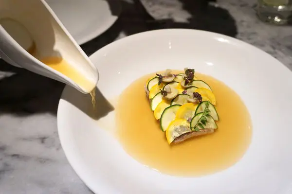 由香港籍國際名廚林明健主廚(Chef Kin)打造的摩登法式小酒館【Chou Chou】融合當代手法、在地食材、豐富香料與如畫擺盤,讓經典法式料理呈現出豐富的味覺體驗。午間套餐只要1080元起,就能品嚐到三道菜+飯後小點(咖啡/茶),是有質感又非常親民的法式餐廳!#台北東區忠孝敦化站美食 【Chou Chou】(發音:咻咻)店家門口Logo兩隻C在親親原來店名Chou法文中有"親愛的"意思店家環境也很正很適合情人約會。 ▼門口擺著《台北台中米其林指南》和四間主廚林明健的餐廳名片LONGTAIL (多元風味料理) Chou Chou (現代法式料理) TART Taipei (西式甜點) WILDWOOD (牛排餐廳) ▼餐廳入口處有法式氛圍的裝潢設計 ▼開放式的廚房、吧台區 ▼經典的熟成鴨區 ▼用餐區 【Chou Chou菜單】可單點,但主推「套餐」,依餐點道數分為$1080、$1580、$2080、$2580 四種價位,我們今天吃的是午間套餐,只要1080元+10%服務費,就有麵包+3道菜+咖啡/茶。(ChouChou菜單)▼$2580/7道 【餐前麵包】今天提供的是裸麥麵包麵包都由餐廳廚師手工製做Q彈又札實,越嚼越香 【香煎田雞腿】香煎田雞卻有酥炸般的神奇脆度咬下一口,田雞腿肉極度Q彈簡直完美!配著玉米筍的碳烤風味醬好香好濃令人讚嘆這醬汁的細緻度與碳火的掌控可以沾著醬與玉米沙拉一起吃。 【焦化洋蔥湯】把洋蔥炒至焦糖化的狀態,再和牛高湯一同燉煮,最後加上康堤起司焗烤,混搭在一起湯頭是濃厚的,但尾韻卻有一絲的苦,不知道是不是焦化造成的。 【嫩煎鱒魚】鱒魚+鱒魚卵,有種親子丼的概念茴奶醬調味優雅細膩,灑上烤可仁片增加脆度頗耐人尋味。 【油封鴨腿】招牌必點!以橄欖油做油封醃漬的動作,再油封低溫慢烤一下刀就聽到鴨皮發出的酥脆的悅耳聲響,裡頭的鴨肉軟嫩中仍保有彈性,味道鹹香非常好吃!必嚐搭配一顆顆燉扁豆,和外圍一圈紅色的是紅酒芥末籽醬但這就很挑人口味了。 ▼油封鴨腿皮脆肉嫩,超級好吃! 【燉煮豬臉頰】豬頰肉以番茄醬汁做燉煮劃開後一絲一絲美麗動人且溫潤順口嚐起來有五星級牛頰肉的水準!但番茄醬汁口味偏鹹,需要與配餐一同吃才更平衡一旁的馬鈴薯泥很綿很奶上層鋪著四季豆、香辣麵包粉隨意搭配都挺好吃! 【杏仁舒芙蕾】舒芙蕾是小烤盅上桌帶有熱度的蓬鬆感混合著入口即化的溼潤感這就是舒芙蕾的魅力所在再抹上一點酸甜的黑櫻桃雪酪冰又熱又冷,一吃就停不下來。 ▼特別喜歡這杏仁奶+燕麥奶的淋醬那恰到好處的甜、香、濃加上具有顆粒的咬感,好吃極了! 【葡萄柚巧克力蛋糕】巧克力蛋糕,切的時候有一層層的快感口味偏甜,但搭配無糖咖啡倒是很剛好混著一旁清爽酸甜的蜂密葡萄柚雪酪也是有一定的水平。 【咖啡/茶】 【餐後小點】瑪德蓮/棉花糖 《蛋寶543》其實大概3年前來吃過Chou Chou留下很好的印象,餐點非常精緻、服務員每道料理都仔細講解這次再來覺得前菜和主菜的處理和呈現都更加精進了,但是甜點的顏值和細膩度卻下滑了,有些可惜。以我們今天品嚐的$1080元午間套餐來說,cp值超高!雖然份量不多,但也吃的飽。沒有辜負米其林餐盤推薦的服務與實力推薦給大家!! ▼文末附上兩張2018年的甜點▼【紅茶冰淇淋泡芙】佐芭樂和烤芝麻。 【烤鳳梨】佐香草冰淇淋/時蘿/粉紅胡椒蛋白餅。 …查看更多