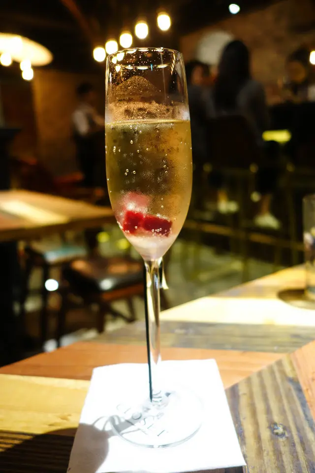 推開藍色大門,你看見的是什麼?東區創意時尚餐酒館【Closet衣櫥餐酒館】,以歐式古堡地窖為設計主軸,提供一個舒適放鬆的聚餐場所,不斷研發創意料理與創意調酒,來這兒你可以放下煩惱,愜意在歐風環境享受美食與美酒。 【Closet Restaurant & Bar】近捷運忠孝敦化站,步行約5分鐘左右,寶藍色大門低調中帶有高雅神秘質感。 一踏入餐廳內彷彿進入歐洲古堡地窖,店內使用了歐洲老建築常使用的工法,採用大量灰磚建材及飛狼的拱形結構, 搭配暖黃有氣氛的燈光,整體氛圍讓人好放鬆。 榮獲"世界50新發現酒吧",提供創意料理及調酒,以單點為主,精心研發兼具視覺與味覺的各式調酒甚是吸晴,﹝禁止酒駕/未滿18歲請勿飲酒﹞ 【前菜/鐵鍋烤蘑菇】NT280將蘑菇去蒂加入香料及蔬食放入小鐵鍋烘烤,上桌前會再淋上酒點燃營造視覺效果。 蘑菇軟嫩多汁,佐香料提味,入口滋味豐富,好吃到讓人一個接一個吃不停,非常開胃。 【紅酒燉牛肉 佐馬鈴薯泥】NT380使用牛臉頰肉搭配七種辛香料及紅酒燉煮,佐底下的松露薯泥及蔬菜、麵包片食用。 牛肉燉的軟嫩,與底部的綿密松露薯泥一起入口,香氣十足,柔滑的口感令人難忘,也可將配料舖在麵包片上食用,風味亦佳。 【酥炸軟殼蟹墨汁燉飯】NT420這道墨汁燉飯雖然黑嘛嘛的,但配上酥炸軟殼蟹、粉色泡沫、晶瑩鮭魚卵及紅辣椒絲,看起來擺盤好美好誘人啊! 使用奶油、海鮮高湯、墨汁、蔬食等炒煮義大利米,加入切碎墨魚丁增加Q彈口感,粉色氣泡為氣沫化的甜菜根sauce,根莖類的甜菜根會帶點蜂蜜及玫瑰香氣,也可搭配一旁的新鮮鮭魚卵與燉飯一同入口更加美味。 包裹特殊調味麵衣酥炸的軟殼蟹 ,整隻皆可食用;帶點米芯的義大利米,佐以香甜甜菜根泡沫與鹹香鮭魚卵,嚐來是海味十足的絕妙滋味。 【傳奇人物系列–煙燻花生老流行】NT400美國波本酒粗曠的皮革風味像是貓王身上的性感皮衣,而貓王向來喜愛花生醬,將其溶入使油脂與酒體緊密融合,並融和煙燻細緻的蘇格蘭海島單一麥芽威士忌,佐以煙燻橄欖、起司及珍珠洋蔥一同飲用。﹝禁止酒駕/未滿18歲請勿飲酒﹞ 煙燻花生老流行輕啜入口,口感絲滑細膩有香甜氣味,後韻有濃郁的麥芽酒香氣,搭配橄欖等配料飲用,增添煙燻燒烤風味,在口中餘香猶存。﹝禁止酒駕/未滿18歲請勿飲酒﹞ 【衣櫥經典系列-初雪】NT400CLOSET冬季特調酒單,意為呈現冬天裡第一場雪的清新感,粉橘色系加上花瓣及碎花紙點綴,極為浪漫夢幻,非常擊中少女心的一杯調酒,幾乎每桌都有女客人點用。﹝禁止酒駕/未滿18歲請勿飲酒﹞ 以泰式紅茶特有的香氣呈現了香草、甜茶風味,再加入血橙汁增添鮮豔的顏色及偏酸的橙果口感,以及少許的鮮奶油和薑糖,喝來有養樂多的香甜風味,酒精濃度不算高,是女孩兒也可以輕易征服的調酒。﹝禁止酒駕/未滿18歲請勿飲酒﹞ 【嫩煎櫻桃鴨胸 佐辣巧克力醬】NT680五分熟油封鴨胸,以辣巧克力醬及芒果調味,搭配南瓜泥及甜椒、玉米筍等蔬菜。 半熟的鴨肉呈現粉嫩色澤,一邊是切片鴨肉淋上香甜辣巧克力醬,一邊則是整塊油封鴨胸自行切片,肉質紮實嫩口,沾點辣巧克力醬及柔滑南瓜泥增添香甜風味,好好吃啊! 【巴黎布列斯】NT280甜點皆為店內手作,巴黎布列斯特是將泡芙變身成圓形環狀,再加入卡士達醬內餡及季節水果,美美的一道甜點,視覺上極為吸引人。 巴黎布列斯特鬆軟可口有嚼勁,搭配柔滑香甜的卡士達醬及新鮮水果食用,多層次的美味滋味在口中散發,爽口不膩,吃完讓人意猶未盡。 【Closet衣櫥餐酒館】不但有美味的餐酒館料理,有故事的視覺系創意調酒更是一絕,服務非常親切有禮,會詳細解說餐點內容,環境高雅時尚有氣氛,是下班後或是假日可以和好友同事們舒適放鬆享用美食及品酒的好所在,歡迎一起來探索【Closet衣櫥餐酒館】藍色大門後的秘密境地! …Read More