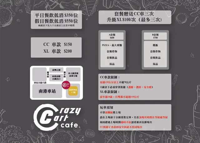 Crazy Cart Cafe by TDS (台北) 網址: https://s.openrice.com/cHRSm02mdW700 地址: 台北南港區市民大道八段360號1樓 電話: +886 27822300