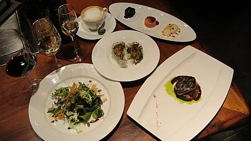 由台灣牛排教父鄧有癸師傅所開設的Danny&Company,一直以來都是我跟一嫂想要細細品味的牛排名店之一,這回趁著一嫂永遠的28歲大壽之日,終於能一償宿願,品嚐這讓人思思念念的老饕牛排,其極度的鮮嫩與唇齒留香的難忘美味。會選在中午的時間前來拜訪,一方面除了我們倆真的是中午才有空之外,再來就是很現實面的單價考量囉,雖然感覺價位還是有那麼一點貴貴的,但至少中午的價格跟晚上比起來,確實是便宜一些!儘管外在低調,但仍顯現出其高雅尊貴的氛圍,推開了大門,服務生快速且親切的迎向前來詢問訂位大名,隨即帶領我們進入用餐區,門口這一區是晚上才會開放的鐵板區,在燈光與玻璃反射的映照之下,更顯其金碧輝煌之姿。來到了用餐區,白色桌巾搭配著紅色沙發椅,簡潔的佈置,卻不失高雅的氣質。午餐的Menu,是以套餐的方式來呈現,包含了前菜、湯品、甜點及飲料,既然是大日子,當然要為一嫂點上一客來到D&C,絕對不能錯過的老饕牛排囉,另外一份則是8oz的美國頂級肋眼牛排。餐前麵包,烤得相當酥脆,搭配著松露奶油,熱熱的吃還帶有嚼勁兒,如果很合您的口味,麵包是可以續的喔!前菜1~香煎干貝。鮮嫩美味的干貝,表面燒微炙燒過,底下襯著波菜的嫩葉,伴著魚子醬及鮮奶油調和而成的Source,每一口都是好滋味啊!前菜2~香煎明蝦。彈牙的口感,與厚實的肉質,簡單的調味,就有大大的美味,我想您一定會跟我一樣喜歡上他的。卡布奇諾蘑菇湯:一上桌彷彿有種喝咖啡的感覺啊,表層有著綿密細緻的奶泡,下層則是各式菌菇組合而成的雞湯湯底,每喝一口,都有著雙重的感受。南瓜湯:濃郁的南瓜香,喝到最後會有點甜膩感,白色奶泡,可以跟南瓜湯拌勻後一起享用!前菜湯品上完之後,服務生會來清理ㄧ下桌面,並換上等等要大快朵頤牛排的餐具。令人期待且興奮的時刻終於到來,色香味俱全的主餐上桌囉~~左:美國頂級肋眼牛排(1,680),右:美國頂級老饕牛排(2,800)。美國頂級老饕牛排。兩種牛排都是主廚建議的三分熟烹調法,肉色雖然偏紅,但完全看不到血水呢!老饕牛排是指肋眼的上蓋肉部位,也是整頭牛最為精華的部位,兼具著嫩度和油花,風味可說是十足,一頭牛只能做十二份八盎司的老饕牛排。鮮嫩多汁、入口即化的美味,就在此刻完美的呈現啊!接下來是同樣美味的美國頂級肋眼牛排。菜單上show的是16oz for 2人,所以這份應該是只有八盎司的頂級肋眼,但份量相當充足,鮮嫩的牛滋味,還是能讓我感到大大的滿足啊!所附的蒜頭可不是一般常見的蒜片而已,而是整顆下去烤過之後變的軟嫩多汁,將原本蒜頭的嗆味完全去除,光是單吃就很美味的。餐後還有甜點與飲品可以選擇!同樣的,服務生會再換上一組全新的餐具。巧克力舒芙蕾:一旁搭配著焦糖口味的冰淇淋,現烤的巧克力舒芙蕾,雖然熱熱的,但一嫂覺得原味的話應該會比較好吃才對。肉桂蘋果塔。搭配著焦糖淋醬以及香草冰淇淋,肉桂的味道反而沒那麼重,這蘋果塔算是出乎我意料的好吃說!招待的解膩甜點,分別是榛果巧克力球和口味相當特別的紅心芭樂軟糖。飲料我們選的是不用加價的冰奶茶以及熱拿鐵。令人滿足的一餐,就這樣的在服務與美味滿分的Danny&Company度過,除了喜歡牛排的您不能錯過之外,這裡也相當適合做為心愛的另一半生日或是結婚周年慶祝的美味餐廳之一,儘管要價不斐,但能夠嚐到美味的牛排,我想這樣的花費,絕對是值得的啦!…Read More