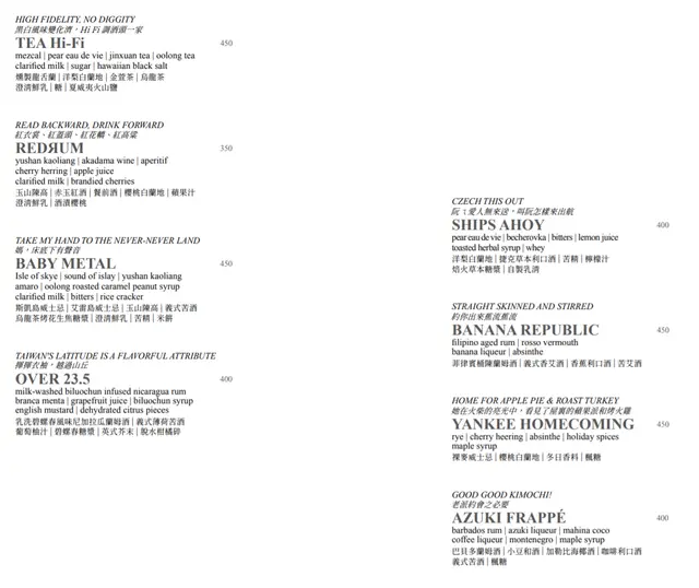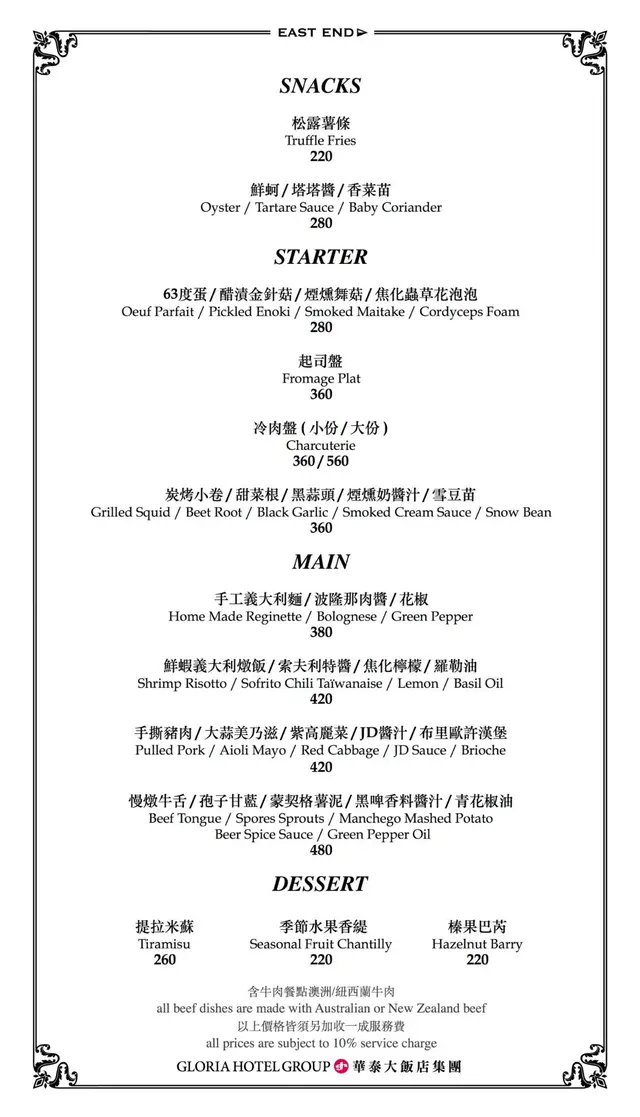 EAST END (台北) 網址: https://s.openrice.com/cHRSm02iO0600 地址: 台北大安區大安路一段56號3樓 電話: +886 0903531851