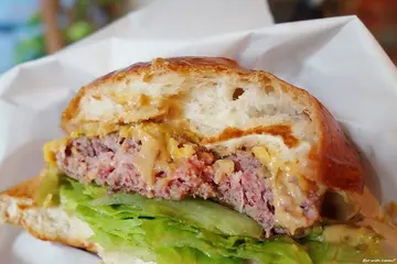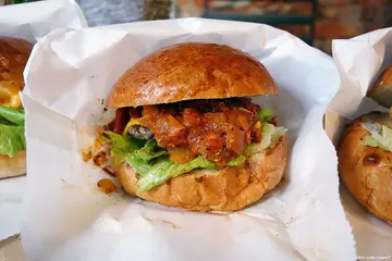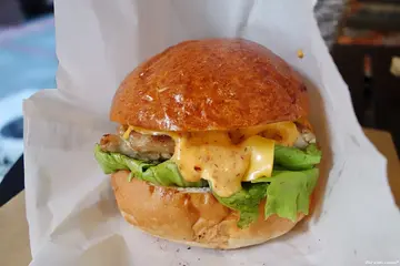 Everywhere Food Truck是近年大台北地區頗具名氣的的新潮食物餐車,主打各式手作漢堡,價位落在百元上下,即使是偏向不定期變換時間地點的營業模式,依然培養出一群死忠的顧客,Everywhere Food Truck較常出現的區域以大學或上班族集中的辦公室、園區週邊為主,在各類活動或市集中也有機會看到這台復古餐車的身影,這回則是前往在民生社區的”haveAnice…MARKET”活動中購買。到達市集時Everywhere Food Truck的餐車旁排起一列人龍,當天計算了一下從開始排隊拿到餐點總時間大約40分鐘,其中一部分原因是受當日交通狀況影響所以延後抵達開始營業,,依序點完餐後到一旁等叫號,等待時覺得油煙竄出的情況還滿明顯的。另外事前聽朋友提過Everywhere Food Truck平常日有一天中午固定在他們工作地點附近擺攤,生意同樣非常之好,有提供預先訂餐的服務但有限量也是很容易訂單額滿,不難感受到這台餐車驚人的魅力。雞腿類的商品後來有調整過價格,變成和牛肉漢堡相同的一百塊,和我們造訪的時候相比小漲了10元,新的菜單、價位、擺攤地點等可以參考店家的FACEBOOK漢堡以白色L型紙袋裝起後會另外在套上一個牛皮紙袋,短時間提著倒還行,這回是帶去附近步行約4~5分鐘的Beer&Deer享用,Beer&Deer是專賣精釀啤酒的商家,而且開放自帶外食,正好可以點個啤酒配漢堡。漩渦花生醬手拍牛肉堡 100元略大的麵包夾入牛肉漢堡排,生菜和起司似乎是每款漢堡都配備的基本配料,牛肉漢堡肉厚度一般且口感較軟,肉餅份量也比想像的小一點,其實百元價格的漢堡若要求肉香或多汁我覺得有點苛刻,當然有比一些早餐店好,但如果硬要和漢堡專賣店相比,自己是覺得應該先理解餐點訂價和設備環境之間的差距,不過配上較濃厚的花生醬後就有點顯得不足了,不但牛肉本身的味道存在感更低,少了油及肉汁加成,突顯出花生醬的濃膩,而且可以增加咬感的薯片也是個偏乾的食材,雖然夾了一些生菜幫助還是有限。等待時有看到店家將麵包一個一個對切擺到煎檯上烤熱,加上原本色澤就滿美觀的,所以對口感有點期待,但實際吃到時沒有特別酥軟的感覺,但熱過的口感在夾餡當然還是較為相襯加分。1933手拍牛肉騷莎堡 100元1933手拍牛肉騷莎堡是當天吃到的三款漢堡之中最喜歡的口味,搭配酸且有辛香的番茄莎莎醬,雖然口味較重但仍能帶來清爽感,而且因為是比較有水分的配料,彌補了原本漢堡夾肉有點乾口的問題。蒜辣濃天使醬脆皮雞腿堡 90元雖然雞腿份量或厚度也屬一般,但部位緣故口感上我覺得反而較牛肉出色,而且表皮有處理過帶著焦香脆感,搭配的天使醬蒜味濃厚還有著些微辣度,一樣是偏重的口味。以價位落在百元左右的標準來看,Everywhere Food Truck算是不錯吃的漢堡,但以我自己的口味標準如果說驚艷就顯得有點浮誇了,加上當天在現場等了超過半小時將近40分鐘,覺得想再次去排隊的動力不大,如果要前往店家平常擺攤地點附近,建議先確認當日可否提前訂餐,免得趕不上午休時間結束。從特地來排隊的人潮不難看出Everywhere確實是頗受歡迎的餐車,自己也有感受到店家親近又討喜的待客方式,不過若以嚴格的眼光來看,既然選擇以餐車模式經營,自然有預估到會有許多不可控制的問題產生,而且在當前法令限制下,遇到週邊檢舉或是被警察追著跑這些也在所難免,而面對這些問題時的態度會是個人比較在意的環節,不過事後看了社群專頁上的一些貼文後感覺和自己的想法可能有一點點不同,無論如何希望他們將來能有更多適宜的地點經營,畢竟這種街頭飲食的獨特魅力,或許能為許多人的日常生活帶來一份滋養。題外話,這天在Beer&Deer點的啤酒來自美國的精釀啤酒廠Deschutes,我選了大河戀(River Ale),朋友的則是同品牌的黑山(Black Butte Porter),因為是依照喜好請店家推薦的,口味接受度都還不錯,這支大河戀是清爽順口型,幾乎沒有苦味,另外一點就是酒精含量不高,在這樣的白日來上一瓶也不成什麼大問題。 …查看更多