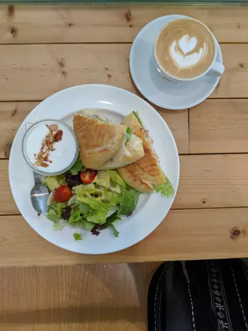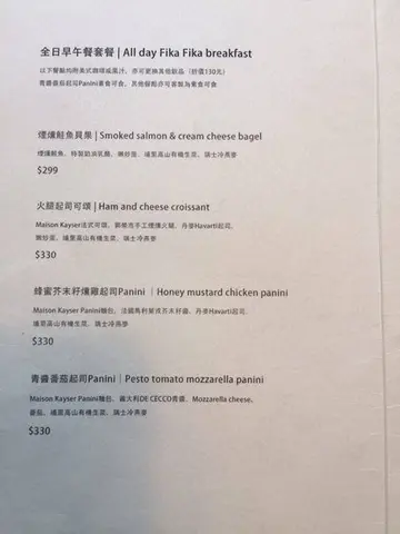 造訪這家鼎鼎大名的Fika Fika Cafe完全是個美麗的意外,其實本來露西只是想個地方打發等電影的空檔,突然想起離長春國賓不遠的這間放在口袋很久的咖啡店,就散步走來哩!!!整間純白己簡約風在伊通公園旁格外顯眼(而且人很多~)小百科:Fika在瑞典文中意思是『一起喝咖啡的休憩時間』店家頭銜很厲害!『2013年勇奪北歐盃的烘豆、義式濃縮咖啡競賽雙料冠軍!!!!』以非歐洲國家之姿拿到冠軍咖啡,無疑是台灣之光呀亮晶晶的專業咖啡機器,但露西完全是咖啡界的門外漢,看沒有~ 整片的座位區都是走IKEA的淡色木作風格,在大片的落地窗下,光線好美呀~小櫥櫃裡放著點心,當天有看到抹茶蛋糕、巧克力蛋糕和葡萄司康。大片的手沖咖啡專區,不時聽到沖泡咖啡的聲音和打奶泡的發出的嘶嘶聲,咖啡香氣更是瀰漫整片空間,就知道店家的咖啡是多麼的有名哩~~~不收取服務費,拿了菜單就可以自己找位子坐下,再到櫃台點餐噢~喜歡咖啡的人可以點冠軍豆來試試牛奶比例可以自行調整的咖啡歐蕾。店家最引以為傲的咖啡系列,注意有低消一杯飲料的規定喔。不喝咖啡的話還有非咖啡、茶葉類可以選擇,連早午餐套餐(飲品折抵130元)也有,不過價格沒有很親切就是了~露西點了名字很花俏的蜂蜜芥末子燻雞起司早午餐($330)來試試,旁邊是欠人K的英格蘭茶拿鐵($160)。先介紹這杯飲料,跟星巴克的玫瑰蜜香茶那堤有70%神似,茶香味很明顯,只有淡淡的甜味,沒有很特別但也不差~兩塊對半切的帕尼尼+沙拉+穀物燕麥。以早午餐的程度來說是有點弱,食量大的人應該吃不飽(好佳在露西是小鳥胃!)份量小小的生菜沙拉澆上濕潤的油醋醬,讓菜葉有點太軟,露西沒有很愛~燕麥優格還不錯,優格是無糖無味的,吃的到純粹的燕麥和葡萄乾果實粒感。帶有孔隙的帕尼尼麵包是用烤箱烤過但沒有壓痕的那種,賣相一樣很樸實,反覆在嘴巴中是越嚼越香,外皮酥中帶硬,有點像法棍和拖鞋麵包的綜合打開來檢查一下雞肉的大小,很好!!!!麵包有多大,雞肉就有多大融化的起司把嫩切雞肉巴得緊緊的,希望他們永遠別分開!!!灑上沒什麼味道的芥末子(不是芝麻喔!!),另外有一小片蘿蔓葉最作為點綴,增加些許清脆口感。整個帕尼尼算是麻雀雖小、五臟俱全唷~~登登~合起來後長的就是這樣!!!單吃也ok的麵包烤得微熱微酥,充滿存在感的雞肉、起司搭配得相當不錯,特別是帶有點鹹味的丹麥起司,加熱到半融後味道更加明顯,是整份帕尼尼最閃耀的一顆星星拉花很有氣質的抹茶拿鐵($160),旁邊附有兩片牛油餅乾。抹茶拿鐵本身的抹茶味沒有很濃,所以自然也沒有什麼苦味,而且甜度算是偏低,比7-11或是星巴巴的抹茶飲品都不甜很多,打到綿密細緻的牛奶,喝下去很溫順,天冷時來一杯暖手暖胃!!!如果喜歡不甜抹茶拿鐵的人一定會很愛這一杯啦,但露西是螞蟻,所以喜歡再偏甜一點的!!!因為太想吃冰淇淋,就點了唯一跟冰淇淋扯上邊的阿法奇朵($200)。用高腳杯盛裝著兩份濃縮咖啡+雙球濃醇的香草冰淇淋,一上桌就好想吃呀!!!!香草冰淇淋非常厲害,還可以撐過連拍10張照片的時間,加分(這算優點嗎)奶香味超級濃郁,含在嘴巴中會慢慢釋放出更多牛奶甜香!!!不確定店家的香草冰淇淋是自製還是外購,但沒有廉價感就對哩~冰淇淋吸收著微苦的濃縮咖啡,挖下每一口都可以嚐到不衝突的雙重滋味另外還有至少三種的堅果類,露西每挖一杓都在猜這到底是什麼果粒!!!凝固後的黑巧克力流線也讓這杯甜食更有看頭,吃起來更有趣味~旁邊擺上一片穀物餅乾,吃起來並不會有那種吸太多濕氣而潤潤的口感,脆感十足、非常新鮮,掰成小塊的穀粒餅沾著甜而不膩的冰淇淋好好吃呀~這份材料豐富的阿法奇朵真的很好吃,配料包羅萬象,而且因為有餅乾和穀物的加入,吃完其實會有飽足感喔!!!拿著一杯美麗又美味的甜點,倚著靠窗的舒服位子,還有微微的陽光灑進來,這樣的午後悠閒時光讓人完全捨不得離開呀~~~Fika Fika Cafe果然是一間人氣咖啡店,造訪的這天人來人往,座無虛席,沒有用餐時間限制,很多人都抱著一台筆電,點一杯咖啡,享受愜意哩~鹹食表現的中規中矩,成績大概是落在「甲」的範圍,但是價格有點太高,如果沒有很餓是可以考慮一下阿法奇朵深得露西歡心,是一份屬於大人的美味甜點推薦給不想去空氣悶熱的圖書館,正想找間咖啡廳寫報告的你!!!!後記:露西這天吃完後才發現自己竟然沒有點店家的冠軍咖啡!!!!就像是去九份竟然沒吃芋圓一樣的懊悔~已經面壁思過了!!!…查看更多