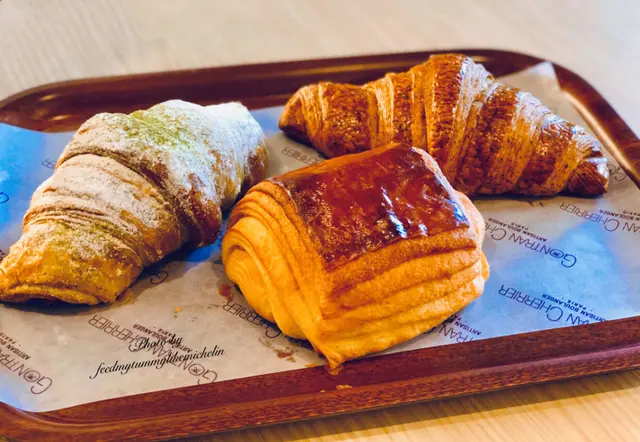 Gontran Cherrier Bakery Taipei是法國人氣主廚 GONTRAN CHERRIER 一手打造的精品烘培坊(簡稱GC),曾被華爾街日報評選是法國巴黎最好吃的可頌。GC可頌在日本、韓國及新加坡造成話題後,2016年夏天 GONTRAN CHERRIER 在台北設立旗艦據點。也造成了一股可頌旋風。一直耳聞GC可頌的好名聲,特別來現場嚐嚐看我心目中的第一名可頌吉可頌有什麼差異。GC烘焙是在法國購買當地頂級原料及全套旗艦烘培設備原裝來台,用嚴謹的態度與天然原料,結合當地食材。GONTRAN CHERRIER 旗艦店位在捷運國父紀念館站附近,店面不僅販售的品項很多,也設置許多很網美的座位,也販售飲料等,是間全能麵包店(或是可以把它當作下午茶店了) GC烘焙的室內比想像中大很多,有長桌也有圓桌,這天周末到訪其實沒有什麼人耶 後面還有一塊很好拍照的網美區,整體設計上是清爽的淡色調為主 另外架上還有提供多台烤箱,讓你買完可頌可以自己來回烤!我是事後才發現烤箱的存在…所以是吃常溫 GC可頌 麵包介紹GC販賣的品項真的很多,除了知名的可頌就好幾種口味之外,當然也少不了各式的麵包、甚至甜點櫃中也有許多甜點價格都在蠻合理的範圍內 也有飲料可以點,如果需要夾餡的可頌,是現場跟服務人員說,現場擠進去的喔GC可頌 4種口味介紹 (價格以最新官網公告為準)香草泡芙可頌 $65現點了一個香草泡芙可頌,服務生會把冰冰的卡士達奶油擠進去,但可惜的是我覺得沒有加分,原本原味可頌上面的奶油香氣反而是被卡士達蓋過去原味可頌$50原味可頌果真是好吃,有明顯的奶油香氣,外層頗為酥脆、蓬鬆中又帶有一點彈性的口感,我個人推薦原味可頌。如果要跟吉可頌比起來,GC的外皮似乎更脆一點,但吉可頌的中心彈性更好,是一種外酥內軟Q又濕潤的狀態,相較起來GC一樣是很好吃的可頌但會有一點沒有記憶點。巧克力可頌$55巧克力可頌的外面皮是跟餅乾一樣脆的,更硬一些不是酥的,有帶一點點的焦味與濃郁的奶油香。而本來覺得裡面包的巧克力好少,一吃才發現,他巧克力醬非常甜,難怪放得這麼少。這個可頌我欣賞外皮但不欣賞內餡。法式傳統蘋果派 $85使用法國進口裸麥粉,酥脆的丹麥餅皮咬下去有明顯的千層口感,非常討喜。濃郁的蘋果泥中帶有一個獨特的香氣與鹹味。並沒有加入常見的肉桂,所以不敢吃肉桂味的人這款蘋果派依然適合你,這個蘋果派算是我心中跟原味可頌可以並列第 一的品項,值得試試。…查看更多