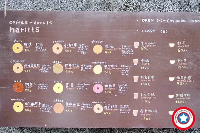 **歡迎光臨 萍萍的美食記錄網**N訪的甜甜圈,再訪依舊很喜歡。***店家資訊***Haritts Taipei電話:02-8771-0645店址:台北市松山區復興北路81巷33號1樓營業時間:週一至週六 上午11:00 ~ 下午07:00內用低消:飲品一杯來自東京涉谷的Haritts甜甜圈,真的好好吃這回帶著友人來下午茶,喝著咖啡配甜甜圈又誇張的一直緊盯著櫃上不時出爐的口味還不斷的一直加購著不同的口味這個下午,我們真的好over,卻買的好開心!飲品價目表內用每人需點一杯飲品,不限用餐時間建議想內用,先找個好位子甜甜圈的所有口味玻璃櫥櫃,可清楚看見當天出爐的口味及價格更重要的還有現在還買的到嗎好多口味都寫著「完售」附近的居民們,你們好幸福喔店家有提供臨近地區的外送服務熱拿鐵 NT$120友人點的,原來Haritts不止甜甜圈好吃連咖啡都香醇好喝,讓友人讚不絕口栗子拿鐵 NT$100(限定)期間限定,可遇不可求呀粟子味蠻濃的,且不會過甜喝來順口味香濃 原味 NT$35最基本款,也是價位最便宜的甜甜圈這價格真的很划算,因為真的很好吃外層的糖霜很細,且一點都不會死甜超級軟Q的,鬆軟到不行,讓人一口接一口友人一開始說好飽吃不下了,只先吃了一顆聊著聊著,手居然又抓起了第二顆,還吃光光抹茶紅豆 NT$60要不是因為姐姐愛抹茶,我是不會主動買的這口味,連不是抹茶控的萍萍都要給個「讚」抹茶的色澤綠的勻稱中間夾著飽滿的紅豆餡熱愛抹茶的朋友千萬不要錯過這是非抹茶控的萍萍也很推薦的一口咬下嘴唇先碰到細小不甜的糖霜鬆軟又很彈的甜甜圈還有那抹茶香氣實在是太誘人,令人難以抵擋每一口都好紮實,是不帶苦的抹茶味中間的紅豆餡綿密細緻卻不膩口很有層次感,讓人好滿足賣相100分,美味指數也是100分榮登萍萍心中,台北最好吃的甜甜圈柑橘 NT$50好清新的柑橘口味也是我們吃了很滿意的柑橘的味道在入口時整個散發出來是很迷人的香氣,也是女生會喜歡的口味巧克力 NT$55吃的到整塊的巧克力巧克力的味道香甜,吃起來甜度不會太膩口內餡的巧克力帶點微苦的滋味,好迷人 奶油起士 NT$60滿滿的起士餡,完全難以抵擋的誘惑起士是帶點淡淡的鹹又香的味道鹹甜鹹甜的,不吃就太對不起自己了栗子 NT$55就算再怎麼飽,一樣要嚐鮮愛栗子的萍萍怎麼可能錯過切開除了栗子泥還有整顆的栗子栗香濃郁,入口綿密整顆的栗子口感又更佳下午茶吃Haritts 真的好幸福值得開心的是友人也都很喜歡離開時,人手一袋買回家和家人分享用餐環境開在巷弄中,是老舊的公寓卻相當的有味道這個午後,我們好放鬆放鬆的吃,開心的聊天庭院也擺放了座位,旁邊都是綠色的植物為老舊的公寓增添了不同的樣貌秋天坐在外面微風吹,應該很舒服很簡單的櫥櫃保有公寓的原貌,添購了木質的桌椅沒有華麗的裝置,走的是簡約的日雜風看來簡單,不擁擠、是舒服的**女生聚在一起聊天八卦,真的好開心喔!…Read More