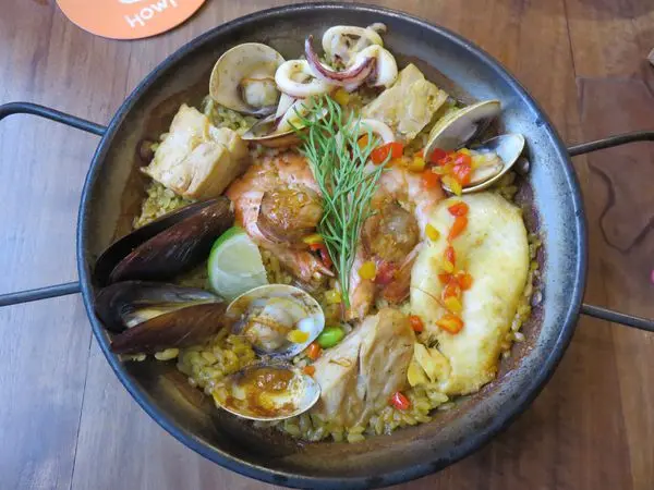 剛好可以來個下班小約會~雖然地址在瑞光路589號上~但正確的位置卻是在585號某棟大樓的正後方!一旁還有付費停車場(所以開車來的朋友別擔心~) 門口還放著童趣的棒棒糖機~有興趣的朋友記得來玩一下嘿~啤酒有買一送一的優惠~雖然是平日的晚餐~但還是有不少內科人來此聚會用餐!挺熱鬧滴~正中間是二大長桌,可以坐在高腳椅上用餐~還可以邊看電視看著運動比賽!一群朋友邊看比賽邊加油一定又更熱血囉~天花板上掛著不少的鍋具作為裝飾~好特別!那些鍋子我還滿喜歡好想要喔~ 這紫色的小物是隔熱墊喔~是這樣用滴!招待:西班牙薯塊將馬鈴薯切成小塊後,浸泡過牛奶後入鍋油炸,再淋上西班牙特有的美乃滋這西班牙美乃滋後續也會在烘蛋中出現薯塊吃起來一點都不會油膩,鬆鬆軟軟的還富含水分,滿好吃的!目前有推出鍋飯大胃王的活動~自認食量不小的朋友快來參加喔~飲料(特調SPECIAL)PASSION 4 FUN (養樂多/柳橙/檸檬/百香果)-柳橙色FUNNY LYCHEE(荔枝/薄荷/龍井/葡萄柚)-檸檬色猛然一看名字好像調酒喔~擔心了一小下!還好這完全不含酒精成份~所以讓我們放心喝~不然等一下就無法騎車回家囉~PASSION 4 FUN喝起來酸度比較明顯,怕酸的朋友就要考量一下了!FUNNY LYCHEE喝起來很爽口~相對比較起來我們比較愛FUNNY LYCHEE蒜香白酒蛤蠣蛤蠣肉好飽滿喔~每一顆都好大一顆!熟度煮得剛剛好~吃了還有略帶爆漿~愛吃蛤蠣的老芭吃得好開心~蒜香只有淡淡的!~連害怕蒜味的我也可以接受唷 羅勒沙朗牛排好飯 這一道可是我家老笆指定了~迷錯!就是因為有牛排~送上桌時,服務人員一在提醒,因為整個羅勒沙朗牛排好飯是連同食材與鍋具一起烹調了~所以鍋具十分的燙手~一個不小心真的會燙傷喔~(用餐的客人千千萬萬要小心唉)若要移動,此時可愛的隔熱墊要拿出場囉~上頭的牛肉可不是薄薄的牛肉片,可是厚實的牛排肉喔~而且可是有好幾大塊牛排的熟度是略為出血的6.7分熟的熟度,如果不敢吃那麼生的朋友沒關係,先不要吃,把牛排一樣的擺於鍋中,鍋中溫度還滿高的,一下子就會提高熟度囉~牛排醬送上桌也是熱的耶~這牛排醬的滋味跟一般吃到的蘑菇或是黑胡椒醬不一樣羅勒醬混合飯~滋味是順口的,我還擔心會有很重的香料味,還好還好!並沒有~還好不少的蘆筍段,很鮮嫩喔~米飯只帶著一丁點的米心,很好吃喔~整鍋飯都被我們夫妻倆給完食了 馬鈴薯烘蛋佐西班牙美乃滋 一樣的老話,鍋具十分的燙手,跟招待的西班牙薯塊淋上相同的西班牙美奶滋因為略帶一點微酸的美奶滋讓油烘的蛋更為爽口~還吃的到一點脆脆口感的馬鈴薯塊~好吃~對於上菜速度掌控的剛剛好菜色說明一樣的滿清楚~會再次提醒客戶該小心的地方!無論是情侶聚餐或是同事聚餐~HOW FUN會讓你FUN~…查看更多