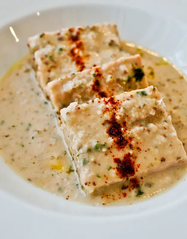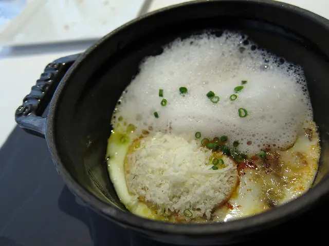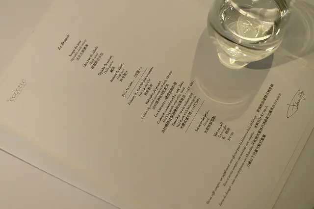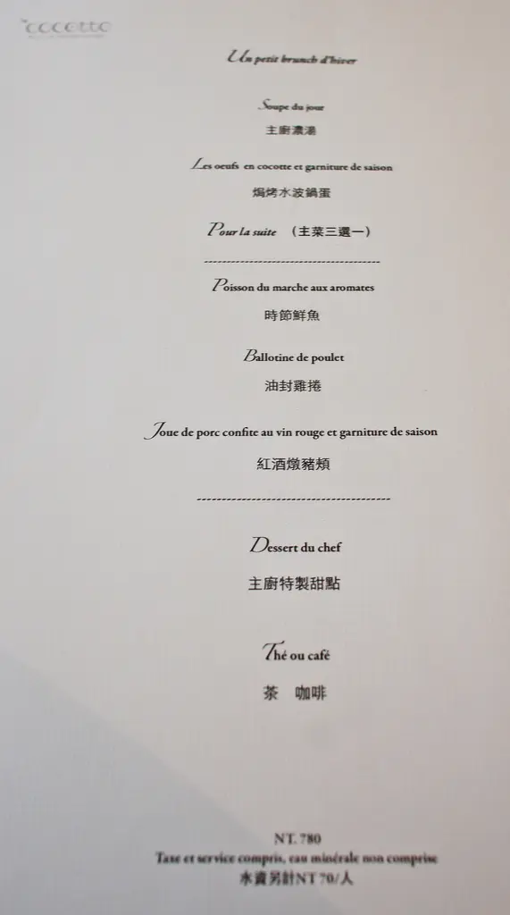 這家餐廳挺特別的,只有周三至周日營業,店裡位置也不多,加上商業午餐頗受好評,建議先訂位比較保險啊~用餐當日特意請了假,因為早上可以先去領老公送我的聖誕禮物 - Iphone 5 光是領機就花了近2小時,還好現在有捷運很方便,從東門站4號出口,走3~5分鐘就到了! 隱藏在小巷的店門口。 和店門來張合照吧~ 粉筆畫的高盧雄雞跟營業時間~~招牌也低調的被樹枝擋住啦 店門口的簡介板及靠窗的雙人座,有柔和的光線,不過略略嫌擠了一些。 因為我們最早到,所以選了四人座~舒服多了。 等侯時段無聊玩玩新手機~YA 店內可愛的小裝飾。 很搶眼的紫色小名片。 店內風格簡單而舒適。 這裡的水是用“ 羅馬之源 ”礦泉水!有一般跟氣泡的,也分常溫跟冰水~水資另收70元 我跟老公點的都是Deux entrées, un plat et undessert 雙前菜+主菜+甜點 NT 750 有些主菜需再補差價。香烤麵包。外皮香脆而內裡口感鬆軟又扎實。奶油是法國Isigny奶油灑上一點海鹽,抹在麵包上很搭。可以多續一次。 接下來是前菜。Fine lasagne froide provencale普羅旺斯千層麵(冷盤)這是我點的,據說每日限量幾份而已~非常的精緻美麗,端上來就讓人目光為之一亮。麵皮柔軟的口感很令人驚豔,酸酸甜甜的蕃茄醬搭上淡白色的起司薄片真是香濃美味。 Les oeufs en cocottes et garniture de saison焗烤水波鍋蛋佐洋蔥老公點的,他愛死水波蛋了~滿特別的口感。但我覺得我點的千層麵冷盤比較好吃~<( ̄︶ ̄)> 廚房是利用玻璃跟鏡子做成半開放式的,一方面是讓客人看到廚師在工作,也方便主廚看到客人離席時,出來送客! 因為懷念義大利之行,所以選氣泡礦泉水。會附上新鮮檸檬片,看起來視覺效果就很好。 菜單及介紹。 主菜選項。 Emietté de crabe,cebettes grillees et veloute de mais玉米泥濃湯佐碎蟹肉這道湯品是老公點的,味道非常的濃郁,好喝。 魚子醬也給得頗大方~ Velouté d’asperges au citron法式蘆筍濃湯很清爽的口味,也就是比較平淡,喝得出蘆筍的甜味,但就是沒玉米湯的香濃。 porc, petits pois, duo de tomates et purée de pomme de terre.(en cocotte)紅酒燉豬頰佐番茄二重奏與青豆馬鈴薯泥(鑄鐵鍋料理) 本來我不太想點豬肉料理,但考慮到店名既然是鐵鑄鍋,那當然招牌料理想必也是鐵鑄鍋料理~加上蕃茄跟馬鈴薯泥都是我喜歡的,所以就點了這道。比我想像中的美味許多~豬頰肉燉得非常軟嫩,根本用不著刀叉~我跟店員要了湯匙,輕輕一壓,肉就分開了~薯泥很細緻,搭著醬汁一起入口,太美味了~Rousole de l’Aude et garniture desaison.(en cocotte)私房奧德省肉餅佐季節蔬菜 (鑄鐵鍋料理)當天中午好像只有限量5份左右,後來的客人要點都說賣完了.. 這道也是出乎意料外的美味,份量十足,雖然是肉餅,但夾雜著蔬菜及微酸的醬汁,很爽口不膩,非常超值,值得推薦。 Clafoutis克拉芙提招牌甜點,有點像口感較為乾硬紮實的冰麵包布丁。 細細的黑色應該是香草籽,櫻桃乾酸甜可口,好吃。 每日甜點:米布丁老公覺得像冷的甜燉飯,但我覺得似乎加有椰奶,好像西米露,米的口感略硬,咀嚼起來別有一番風味,好吃。 濃郁、香滑,甜味清爽,非常值得一嚐。 餐後飲料,中規中距。 整體來說,一套商業午餐約750+70元的水資,不收服務費,這樣的水準,很超值,下次有機會的話,會再來嚐嚐這家的晚餐。…查看更多