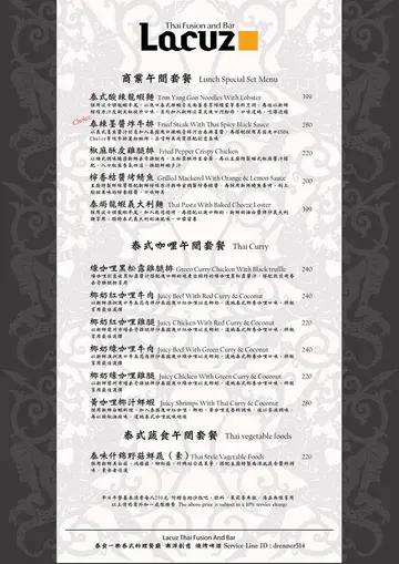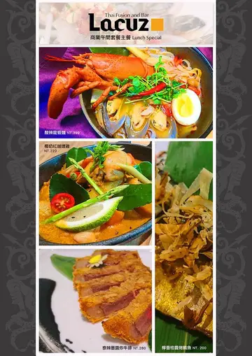 人數少要吃泰式料理真的很尷尬,因為料理都很大份,兩個人卻吃不完啊今天帶了老公來品嚐一間獨特的南洋泰式料理餐廳,讓你吃得精緻又吃得飽哦【Lacuz 首都松山館】在首都飯店松山館一樓,離松山車站、捷運松山站、饒河夜市都只要步行2-5分鐘店門口的佈置帶著淡淡的南洋風情,在人來人往的大馬路旁格外搶眼第一眼你看到Lacuz的招牌會以為這是一間咖啡廳,跟泰式料理沾不上邊其實老闆在公館已經開了泰食一樂 泰式料理吃到飽的餐廳,Lacuz單點的松山館 則是他新的夢想以Thai Fusion Cuisine作為精神標語,創新的混元泰式風味料理,讓饕客有全新的味覺饗宴餐廳位在飯店1樓的公共空間,木頭材質的隔板層疊交錯,打造一處溫馨的用餐空間整體空間方正寬廣,挑高的設計人多的時候也不顯得擁擠Lacuz Thai Fusion & Bar 除了美食之外還有啤酒BAR的部分,大面積落地窗採光很明亮電視上轉播著運動賽事,不管是住客或客人,Lacuz都幫你營造出一個悠閒放鬆的空間一旁的層架上擺滿了各式各樣的啤酒空瓶當裝飾,散發著美式氣息底下瓷盤擺飾都是藝人或名人的簽名,連他們都被Lacuz的獨特南洋料理迷倒啊點套餐還提供飲料免費喝到飽,有氣泡式飲品之外還有咖啡、茶類吃辣的就想配可樂,吃飽就想來杯熱茶助消化,多樣飲品任你選擇實在太貼心了茶品選用來自斯里蘭卡專門生產紅茶跟綠茶的Stassen的茶包店內的啤酒吧的啤酒種類非常多,很多是老闆自己引進的,別的地方比較少看到建議大家可以坐大眾運輸工具過來用餐,這裡交通很方便這樣就可以開心地喝酒配美食啦! (開車不喝酒,喝酒不開車)每一瓶都想嘗嘗看啊~來到Lacuz你可以單點,也有套餐選擇我們點的雙人套餐裡面還看到天使麵,炸牛排?! 這不是西式料理嗎?沒錯!! 這就是老闆推出的混元泰式風味料理,結合各國料理精華元素搭配泰式風味讓饕客吃到有別於一般的泰式風味料理光看擺盤你說我去吃西餐都會有人信,但我是來吃泰式料理喔!【涼拌中卷沙律】涼拌系列在泰式料理算是常見,酸酸辣辣的滋味是開胃必點用了新鮮的中卷搭配洋蔥,冰鎮過後吃起來更爽口進口的泰式醬汁加點檸檬去提味,鹹、酸、甜三味一體特別用了大辣椒跟小辣椒籽下去混合,整體吃起來算辣喔!中卷圈吃起來彈牙可口,越吃越ㄕㄨㄚˋ嘴【焗烤起司月亮蝦餅】除了原有的蝦漿外,還特地加了多利魚漿下去增加蝦餅的口感多利魚讓蝦餅多了點海味,兩個融在一起吃起來更有彈性上面還加了馬芝拉起司下去焗烤,讓泰式口味增添了風格,有點像在吃pizza的錯覺厚薄度也很適中,吃起來很Q彈一般泰式餐廳都是沾泰式酸辣醬,Lacuz則是用了紫蘇梅醬喔吃了一口覺得意外的搭ㄟ,紫蘇梅的鹹甜順便解了起司的膩我一個人可以把它吃光光沒問題呢!【蝦醬空心菜】蝦醬、蝦膏、蝦米下去拌炒,沒有一般蝦醬濃濃的味道特別加了彩椒增加層次,微辣的空心菜也非常下飯喔【炸牛排佐泰辣墨魚醬汁】選用choice特級美國牛排下去酥炸,超薄的炸衣讓牛排保有嫩度看起來很像日式炸排骨,左看右看都不覺得它是泰式料理墨魚醬汁可是大有學問,特別加了味道比較濃的辣蝦膏跟墨魚汁調味還有砂糖、奶油一起攪拌,吃起來多了滑潤的口感,很特別的泰式醬料吧少了些墨魚汁獨特的海味,一點點甜+一點點辣,配上炸牛排你還是吃的到泰式的元素喔這道炸牛排真的讓我驚艷,尤其是墨魚醬汁滑順的口感讓我印象深刻【焗烤波士頓龍蝦炒天使麵】我認真在這一道找不到泰式元素,但是光看焗烤龍蝦就讓我心花怒放有了這半隻焗烤龍蝦的站台,這一盤麵變得好霸氣啊誰受的了厚厚微焦的起司啦~口水都快流下來了麵體特別選了比較細的天使麵,吃起來感覺適中偏軟,像麵線一樣這樣的口感跟泰式米線有點類似,讓西式餐點裡還是藏著泰式風情讓它變成泰式風味的小祕訣就是醬汁,醬是了香茅、綠咖哩、椰奶調配出來的這一道真的活脫脫是泰版義大利麵,加了綠咖哩讓義大利麵帶著辣度香茅味道不會過濃,每一口嗆辣帶勁,讓人捨不得放下筷子啊龍蝦很新鮮,輕輕一剝就能把整隻蝦肉拉起來一口吃下去真的太滿足了,龍蝦完全沒有腥味,肉質紮實又鮮甜還貼心地附上工具,讓你輕輕鬆鬆可以吃到蝦鰲的肉蝦螯的肉質也很飽滿,沾點義大利麵的醬也很對味建議大家飯可以吃幾口就好吃,把胃拿來裝特色南洋創意料理比較實在啊!!因為每一道都好好吃,我只捨棄白飯啊~哈哈哈【摩摩喳喳】最後還有甜點才能做美好的end,有摩摩喳喳跟烤香蕉可以選天氣熱熱的當然選摩摩喳喳來消消暑啊裡面有亞答枳、紅毛丹、菠蘿蜜、西谷米,最後加上碎冰跟椰奶就是道地的泰式甜點嚕雙人套餐的組合真的吃很飽,重點是我們都有吃完兩個人終於也能吃到多樣化的泰式料理啦~灑花整個用餐氣氛都很輕鬆,服務人員也會貼心的講解餐點的特色如果你想要吃不一樣的泰式風味料理,推薦你來Lacuz 首都松山館走一遭混元泰式風味料理絕對讓你驚豔喔!…查看更多