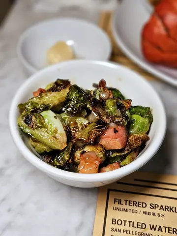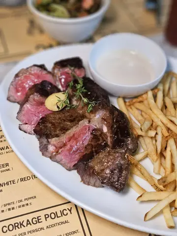 開店幾年以來品項一直很專注明確,不過牛排真的是......😓優點無收開瓶費、炸細薯還可以續到飽,當作帶酒來吃薯條ok,主餐其實最喜歡漢堡,波龍整尾清蒸也不壞,至少有甜且juicy。約克夏還好,但可以打包,保留戰力吃細薯漢堡的肉餅確實ok😌,做五分,我重口味都要再撒一點鹽牛排,肉本身普通的話調理就更該加把勁~熟度也...蒸波龍,附的玉米很甜😘,加點的孢子甘藍味道和火候可以,結果最後烤餅乾火候又怪怪的了...😅