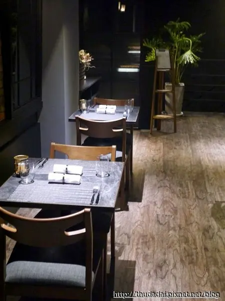 Le Festin:發現在台北市大直捷運劍南路站明水路上新開一間法式餐廳,用合理的價位就可以品嚐到無國界料理的西餐,使用多種中西食材發揮創意,像是「醃漬生和牛.紅蔥.白花椰.蛋筒」、「馬頭魚.白蘿蔔.冬瓜.油菜花醬」、「三色番茄.開心果.瑞可達起司.蜜餞.九層塔油」等等都是特色餐點,這裡還有專業的調酒吧,不只紅白酒、氣泡酒、威士忌、啤酒等多種選擇,滿足不同聚餐約會的需求。餐廳位在台北大直明水路巷子內,平行北安路和樂群三路,附近有許多辦公大樓和住宅,美麗華影城也在步行10分鐘內可以到達的地方。打開門餐廳一樓為吧檯座位,沿著旁邊走上二樓才是用餐區。如果想來這裡單純吃小點喝喝酒可以預訂吧台座位喔。二樓用餐區美式LOFT風格裝潢,大地色系配上溫暖柔和光線,分為感覺溫馨又舒適。餐廳空間不算大,但是座位和座位兼具拿捏得宜,共有24個座位,包含18個一般座位,以及包廂座位(6人),完全沒有擁擠感,用起餐來也不會有互相干擾的問題。6人包廂座位,可以先預訂喔!( 😎 目前無低消限制呢)餐廳菜單以套餐為主,也有提供單點選擇,每個人只要點滿低消就可以。▼ MENU菜單(套餐)▼ MENU菜單(單點)▼ 酒單麵包– 「蕎麥麵包&小法國麵包&自製奶油.咖啡.黑糖粉」▼喜歡這裡烤的熱呼呼上桌的麵包,外酥內軟,咀嚼起來滿是自然麵香,很好吃。▼主廚自製奶油吃起來十分細緻,不只有咖啡氣息,還有淡淡的黑糖香提味。開胃菜– 「醃漬生和牛.紅蔥.白花椰.蛋筒」▼上桌時還以為甜點怎麼提早先來,原來是這裡主廚自製的迷你和牛甜筒,好可愛!▼搭配白花椰醬和醃漬過的生牛肉捲入其中,甘甜醬汁下手有些過重,稍有些掩蓋掉生牛肉本身甜味,但整體吃起來美味,上頭酸豆有解膩效果。開胃菜 – 「慢烤生蠔.日式魚高湯.芥藍.蔥油」▼慢烤過後生蠔和一旁喝起來像鱸魚精的日式魚高湯,加上海苔絲香氣,滿滿海鮮甜充分展現!和生食生蠔相比,烤過後的生蠔味道更濃郁些!前菜 – 「生和牛沙拉.豆薯.味噌.柚子醬」▼花圈擺盤特別亮眼!▼ 綠捲、豆薯、大黃瓜等蔬菜做為沙拉基地,生牛肉口感軟嫩,有一點炙燒過熔化後的脂香更迷人,淋上味噌醬,先嚐嚐原味,再搭配柚子醬享用,多了酸甜風味更爽口呀!▼ 前菜– 「燉牛舌.櫻桃番茄.蘆筍.波特醬」燉煮透徹的厚牛舌,搭配波特醬,吃起來甜意重,可以和旁邊醃漬櫻桃番茄和帕馬森起司一起吃,喜歡味覺層次豐富的感覺。▼前菜 – 「鯖魚.茄子.珍珠洋蔥.米餅」用米餅盛裝,看起來視覺特別亮眼!以珍珠洋蔥和茄子搭配呈現,鯖魚口感緊緻細嫩,甜香四溢,相當美味。▼主餐 – 「馬頭魚.白蘿蔔.冬瓜.油菜花醬」知名米其林餐廳經典菜色在這裡也可以吃的到!▼加入油菜花醬。▼炸至爽酥脆的魚鱗,和細嫩的馬頭魚肉對比口感讓人滿意,魚肉非常新鮮原味就好吃,搭配油菜花醬更能襯托海鮮甜味。 一旁紫色是薑汁冬瓜,是用紫地瓜下去染色。▼主餐 – 「美國無骨牛小排.牛蒡.筊白筍.松露醬」需另+$200口感軟中帶嚼勁兒,肉質細嫩的無骨牛小排,五分熟度剛剛好,不只原味香鮮,旁邊還有柚子胡椒、松露醬可以搭配,讓風味上有不同層次的變化,飽足後又不易膩口。▼皎白筍、牛蒡絲。店家知道我們有孕婦也想吃牛排,所以特別幫我們將半份做成全熟,超級貼心!▼甜點 – 「咖啡蛋糕.馬斯卡邦慕斯.咖啡醬.榛果巧克力瓦片」提拉米蘇變奏版的甜點,有些像是解體提拉米蘇擺盤上桌的意思,看起來特別可愛!▼吃的時候可以將所有元素一口吃,整體味道偏甜,如果有帶小朋友推薦點來試試看! 😆 ▼ 甜點– 「黑椰棗蛋糕.焦化蘋果.巧克力碎.香草冰淇淋.威士忌焦糖醬」在台灣的法式餐廳吃到椰棗蛋糕覺得相當特別,熱熱上桌,擺盤令人食指大動,蛋糕體本身口感綿密紮實,搭配裡面酥脆巧克力餅乾,暖暖氣息隨著威士忌酒味帶出迷人焦糖香,熱蛋糕配上香草冰淇淋冷熱交織的風味,最後在以蘋果的酸甜收尾,多變層次,甜而不膩,非常美味! ▼飽足感會比較重,夏天餐後品嚐對女生來說有些負擔,整體來說不影響我們對這道甜點的好感。另外單點:▼開胃菜 – 「新鮮生蠔.西芹.醃漬黃瓜」$200這裡的生蠔可以做生的,也有熟的選擇,剛好可以滿足我們孕婦忌口飲食習慣。生蠔新鮮,口感滑而飽滿,味道不會過份濃郁,可以配上旁邊的黃瓜和西芹做成的冰沙,有些酸酸甜甜,吃起來鮮香又清新,十分對女生的胃兒。 😎 ▼前菜 – 「三色番茄.開心果.瑞可達起司.蜜餞.九層塔油」$320如果人多的話,這份前菜很適合點來分享,蕃茄粒粒透味,梅子甘甜清香,讓人瞬間開胃,餐後享用還有解膩感呢!▼「Aviation」$380天空藍色那杯,是以琴酒搭配黑櫻桃酒、紫羅蘭,很適合搭配沙拉,清爽滋味盡在不言中。▼「Gentle man」$380選用香草奶油香的Marker’s Mark威士忌,在杏仁酒的提味之下,口感變得更加柔順,尾運帶點太妃糖的香氣,相當特別。▼「Le Festin Iced Tea」$380加了櫻桃跟金桔的調味,增添了酸甜感,像是變奏版長島冰茶,很適合夏天!▼「Hagrid」$420上桌時煙霧瀰漫,神秘感讓我們眼睛為之一亮!聽說這杯調酒綽號又叫「燈籠」十分可愛!▼接骨木花跟奇異果的相互結合,幾片羅勒葉畫龍點睛增添些許香氣,使龍舌蘭的味道讓人更好接受,整體酸甜度比較高的一款調酒。Joyce 打心得時間:聽說這間新餐廳開有幾個月,選了夏季菜單來試試,整體用餐過程滿意,綜合整