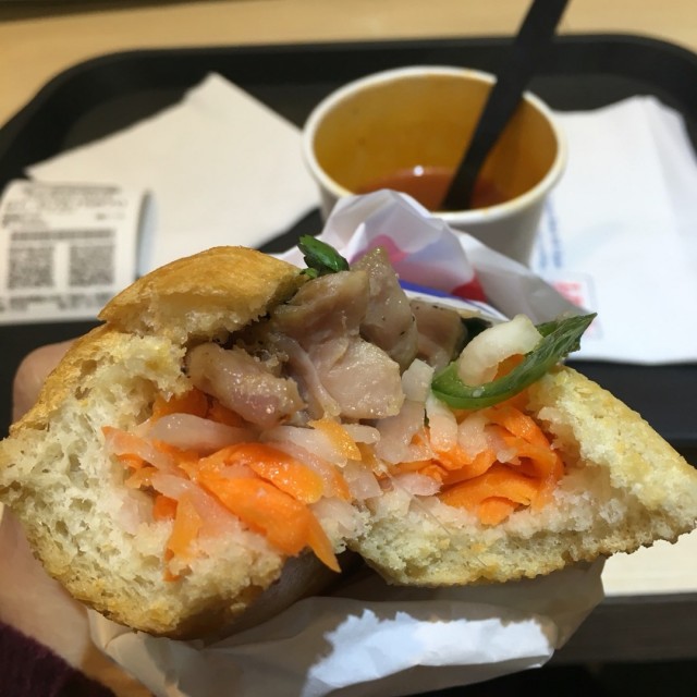 Lee's Sandwiches Taiwan 位置蠻方便的在北車HOYII北車站附近呦之前也是排隊名店過了一陣子就不用排隊了 Lee's Sandwiches為全美最大連鎖法式越南三明治品牌店內販賣的有法越風味三明治、歐式風味三明治、招牌越南咖啡、開胃菜、點心、鮮果昔快餐車全球最大越南三明治(Bánh Mì) 連鎖品牌」和「美國排名第一的越式咖啡法國長棍麵包製成的傳統越南三明治(Bánh Mì)越式咖啡(cà phê sữa đá)為滴漏式黑咖啡加上香醇煉乳 先來看menu有果汁奶昔很特別 三明治也有多種口味 飲料也有不同容量選擇 有些可以選擇法越三明治或是可頌有些只能單一選項 還有許多越式點心可供選擇MENU 連結這次點了特選總匯越式三明治不得不說外皮讓我很驚艷原本看外表想說很硬不好入口是敲的出聲音的那種一咬發現很有咬勁好吃越式火腿也很特別一起吃很好吃 還點了鮮蝦燒肉生春捲嗯。。。普通醬汁不像是一般生春捲會用的酸甜醬 下次要點炸春捲跟法式甜甜圈 指定飲品:• 鮮果昔大杯($98,口味可任選)⋯⋯ • Lee’s咖啡大杯($98)• 拿鐵大杯($88) Lee’s咖啡與拿鐵冷熱不限,但不可更換或加價換購其它飲品Lee’s Sandwiches台北站前店(HOYII北車站)• 地址:HOYII北車站1樓(台北市中正區忠孝西路一段36號,捷運台北車站M6出口) • 電話:(02)2370-0378週一-週日:7:30-21:00 …查看更多