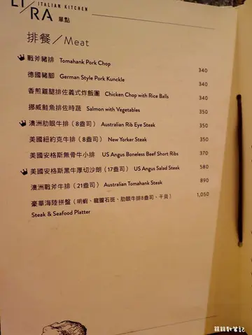 浪漫可愛的建築,彷彿置身歐洲餐廳。供應排餐、義大利麵、披薩等多樣化的餐點,不管是哪種類型的約會聚餐都相當合適。因為常在文山區附近活動,所以之前經過LIRA里拉義大利廚房不少次。以綠白色調為主軸,並以大片玻璃窗營造優雅的氣氛,門外放置著純白座椅等歐洲元素,讓人路過時不自覺得就會將眼光放在這間歐風餐廳。總覺得和自己去過多次的新店CaLACaLA義大利廚房有著類似的風格。後來才知道,原來LIRA里拉義大利廚房是CaLA CaLA義大利廚房(木柵店)更名而成,也是CaLA CaLA義大利廚房旗下的副品牌。怪不得印象中這裡原本也有一間CaLA CaLA的分店。LIRA里拉義大利廚房和CaLA CaLA一樣都有精緻的裝潢擺設,讓人可以在有著美好氣氛的環境下用餐。不過和CaLA CaLA的可愛鄉村氣息相比,LIRA里拉義大利廚房的挑高視野,更多了點華麗宮殿的風格好像這天就如美女與野獸的貝兒般被當作賓客,耳邊似乎奏起了「Be Our Guest」的旋律。餐廳深處連接地下室的通道還以滿滿的書櫃作為背景,更讓人有誤闖童話世界的錯覺。▲炙燒生牛沙拉$140炙燒生牛往往較常在日式料理中看到,能在義大利餐廳品嚐倒是頭一次。薄片牛肉經炙燒過後並不會太生,肉質較有嚼勁像在吃牛排,和原本預想的有些不同。炙燒逼出的牛油香氣相當濃郁,牽引著在日本用餐的回憶。生菜搭配著油醋醬,也很清爽。▲凱薩沙拉$100凱薩沙拉相當普遍,傳統的凱薩沙拉以麵包丁搭配是其特色,上面灑滿起司粉。▲主廚濃湯$60主廚濃湯的表現中規中矩,味道與SUBWAY的義式番茄蔬菜湯相似。▲南瓜濃湯$60南瓜濃湯滑順不會過於濃稠,但也許是南瓜加得較少,所以南瓜味道並不是這麼強烈,味道一般。濃湯裡面混著麵包丁,但是並不酥脆。▲德夫軟法起司麵包(兩片)$30套餐搭配的麵包是軟法麵包,外酥內軟,可以搭配特製沾醬一起品嚐,較有味道。▲麵包的特製沾醬▲松露干貝燉飯 $260兩粒干貝還算大顆,柔嫩飽滿,松露奶油白醬的搭配下,香氣十足。讓我想起過在西班牙小酒館品嚐的松露干貝燉飯。燉飯似乎是使用泰國米來製作,較為細長,不過口感我們較不喜歡。奶油白醬清淡,味道不特別強烈,在這樣的搭配下,干貝的調味明顯,鹹度較高。▲排餐類美國安格斯無骨牛小排 $350牛排一直都是我每次吃西餐都會很想要點的餐點。雖然分量看起來不大,但是內質的口感柔嫩有彈性,多汁帶勁。可以搭配蘑菇醬或黑胡椒醬,讓人憶起傳統牛排館的古早印象。雖然邊緣部位仍有咬筋較為難咬,但是以不到400元的價位來提供,表現真的相當不錯,讓我還會想要再次品嚐。▲甜點布朗尼香草冰淇淋以冰涼的香草冰淇淋搭上熱呼呼的布朗尼,口感討喜且豐富。剛出爐的布朗尼外層微微酥脆,內部則是熔岩的巧克力醬汁,雖然布朗尼本身較甜,但是以香草冰淇淋的清爽陪襯,濃醇與滑順滋味交織,算是剛好的搭配。鮮明的層次也讓我們印象深刻。▲甜點手工提拉米蘇甜點較CaLA CaLA特別,LIRA里拉義大利廚房還有提供手工的提拉米蘇。香氣濃郁、口感濕潤。雖然不至到驚豔的程度,但是還算蠻好吃的。▲飲料文山包種茶(H) $100和CaLA CaLA不同,里拉的飲料較多變化。因為位處文山區,所以和一般義大利餐廳不同,把文山在地名產包種茶也放入菜單之中,讓人覺得特別親切。愛喝茶的我們就特別點來試試看。文山包種茶以立體茶包放入馬克杯的方式提供,也可以回沖。▲飲料蜂蜜檸檬汁(I) $100因為被歸類在現打果汁的菜單中,應該是純粹的現榨檸檬汁搭配蜂蜜調配。蜂蜜份量多,瀰漫著它的清香,建議可以攪拌後飲用,才不會感覺讓蜂蜜集中在某個部位。加入許多冰塊後相當沁涼,酸甜的滋味讓我蠻喜歡的。整體感想:LIRA里拉義大利廚房以排餐來說算是相當平價。而且餐點選擇多樣化,就連素食餐點也有多種選項,也讓吃素的蔬食主義者也能一同前往聚餐。許多吃氣氛的餐廳往往都要五百元起跳,所以LIRA里拉義大利廚房能以輕鬆的價格來提供優質的用餐環境,算是十分難得。怪不得LIRA里拉義大利廚房的生意總是這麼好,和新店的CaLA CaLA一樣,還有許多特地從外地慕名而來的饕客。建議想要來LIRA里拉義大利廚房用餐的人,可以事先訂位,才比較不用擔心需要候位的問題。"歡迎加入槑槑散策記FACEBOOK粉絲專頁,有各位的按讚與互動都讓我感激不盡。https://www.facebook.com/meimeibook/timeline"…查看更多