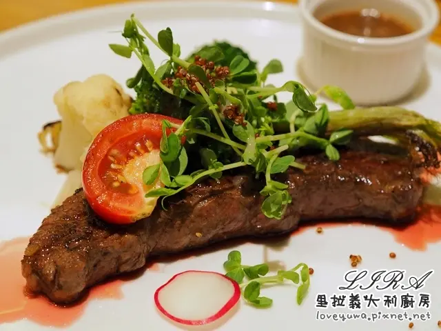 浪漫可愛的建築,彷彿置身歐洲餐廳。供應排餐、義大利麵、披薩等多樣化的餐點,不管是哪種類型的約會聚餐都相當合適。因為常在文山區附近活動,所以之前經過LIRA里拉義大利廚房不少次。以綠白色調為主軸,並以大片玻璃窗營造優雅的氣氛,門外放置著純白座椅等歐洲元素,讓人路過時不自覺得就會將眼光放在這間歐風餐廳。總覺得和自己去過多次的新店CaLACaLA義大利廚房有著類似的風格。後來才知道,原來LIRA里拉義大利廚房是CaLA CaLA義大利廚房(木柵店)更名而成,也是CaLA CaLA義大利廚房旗下的副品牌。怪不得印象中這裡原本也有一間CaLA CaLA的分店。LIRA里拉義大利廚房和CaLA CaLA一樣都有精緻的裝潢擺設,讓人可以在有著美好氣氛的環境下用餐。不過和CaLA CaLA的可愛鄉村氣息相比,LIRA里拉義大利廚房的挑高視野,更多了點華麗宮殿的風格好像這天就如美女與野獸的貝兒般被當作賓客,耳邊似乎奏起了「Be Our Guest」的旋律。餐廳深處連接地下室的通道還以滿滿的書櫃作為背景,更讓人有誤闖童話世界的錯覺。▲炙燒生牛沙拉$140炙燒生牛往往較常在日式料理中看到,能在義大利餐廳品嚐倒是頭一次。薄片牛肉經炙燒過後並不會太生,肉質較有嚼勁像在吃牛排,和原本預想的有些不同。炙燒逼出的牛油香氣相當濃郁,牽引著在日本用餐的回憶。生菜搭配著油醋醬,也很清爽。▲凱薩沙拉$100凱薩沙拉相當普遍,傳統的凱薩沙拉以麵包丁搭配是其特色,上面灑滿起司粉。▲主廚濃湯$60主廚濃湯的表現中規中矩,味道與SUBWAY的義式番茄蔬菜湯相似。▲南瓜濃湯$60南瓜濃湯滑順不會過於濃稠,但也許是南瓜加得較少,所以南瓜味道並不是這麼強烈,味道一般。濃湯裡面混著麵包丁,但是並不酥脆。▲德夫軟法起司麵包(兩片)$30套餐搭配的麵包是軟法麵包,外酥內軟,可以搭配特製沾醬一起品嚐,較有味道。▲麵包的特製沾醬▲松露干貝燉飯 $260兩粒干貝還算大顆,柔嫩飽滿,松露奶油白醬的搭配下,香氣十足。讓我想起過在西班牙小酒館品嚐的松露干貝燉飯。燉飯似乎是使用泰國米來製作,較為細長,不過口感我們較不喜歡。奶油白醬清淡,味道不特別強烈,在這樣的搭配下,干貝的調味明顯,鹹度較高。▲排餐類美國安格斯無骨牛小排 $350牛排一直都是我每次吃西餐都會很想要點的餐點。雖然分量看起來不大,但是內質的口感柔嫩有彈性,多汁帶勁。可以搭配蘑菇醬或黑胡椒醬,讓人憶起傳統牛排館的古早印象。雖然邊緣部位仍有咬筋較為難咬,但是以不到400元的價位來提供,表現真的相當不錯,讓我還會想要再次品嚐。▲甜點布朗尼香草冰淇淋以冰涼的香草冰淇淋搭上熱呼呼的布朗尼,口感討喜且豐富。剛出爐的布朗尼外層微微酥脆,內部則是熔岩的巧克力醬汁,雖然布朗尼本身較甜,但是以香草冰淇淋的清爽陪襯,濃醇與滑順滋味交織,算是剛好的搭配。鮮明的層次也讓我們印象深刻。▲甜點手工提拉米蘇甜點較CaLA CaLA特別,LIRA里拉義大利廚房還有提供手工的提拉米蘇。香氣濃郁、口感濕潤。雖然不至到驚豔的程度,但是還算蠻好吃的。▲飲料文山包種茶(H) $100和CaLA CaLA不同,里拉的飲料較多變化。因為位處文山區,所以和一般義大利餐廳不同,把文山在地名產包種茶也放入菜單之中,讓人覺得特別親切。愛喝茶的我們就特別點來試試看。文山包種茶以立體茶包放入馬克杯的方式提供,也可以回沖。▲飲料蜂蜜檸檬汁(I) $100因為被歸類在現打果汁的菜單中,應該是純粹的現榨檸檬汁搭配蜂蜜調配。蜂蜜份量多,瀰漫著它的清香,建議可以攪拌後飲用,才不會感覺讓蜂蜜集中在某個部位。加入許多冰塊後相當沁涼,酸甜的滋味讓我蠻喜歡的。整體感想:LIRA里拉義大利廚房以排餐來說算是相當平價。而且餐點選擇多樣化,就連素食餐點也有多種選項,也讓吃素的蔬食主義者也能一同前往聚餐。許多吃氣氛的餐廳往往都要五百元起跳,所以LIRA里拉義大利廚房能以輕鬆的價格來提供優質的用餐環境,算是十分難得。怪不得LIRA里拉義大利廚房的生意總是這麼好,和新店的CaLA CaLA一樣,還有許多特地從外地慕名而來的饕客。建議想要來LIRA里拉義大利廚房用餐的人,可以事先訂位,才比較不用擔心需要候位的問題。"歡迎加入槑槑散策記FACEBOOK粉絲專頁,有各位的按讚與互動都讓我感激不盡。https://www.facebook.com/meimeibook/timeline"…查看更多