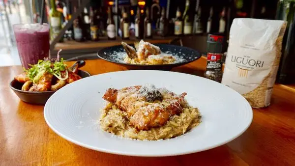 Mastro Cafe內湖店2014年成立以來,艾方妮已是第三次拜訪了!這些年來親眼見證他們用心在餐點的研發上,每一步通往成功的路絕非偶然。這天嚐到的烤半雞、總匯披薩及翼板牛排早午餐,都令人回味無窮!還有終於嚐到招牌甜點-蘭姆酒葡萄乾舒芙蕾,果然名不虛傳呢!不過這次來到Mastro Cafe,整個內部變得寬敞,且在燈光上也做了部份的調整。上圖中間有個長型的高腳桌,原本是利用木層架隔出前後兩方的座位區。現在則設置了更多的座位區,但卻不顯擁擠。這次發現原本白色的牆面也轉成深色系,令整間餐館更符合他們在型態上的轉變。之前造訪的Mastro Cafe,整體風格比較像是大型連鎖的咖啡店。這次在吧檯上方的店名招牌,放大之後更加有拉斯維加斯的華麗效果。吧檯上的許多酒瓶陳列,也強調出店內販售的精釀啤酒選擇性也變多了!點燉飯、義大利麵餐+$90,可以享有餐前麵包、湯品。這天的是洋蔥湯,煮至透明狀的洋蔥,香甜的滋味很不錯。黑麥餐包。熱熱的餐包,從中間塞入奶油片,雖是很肥,但很好吃!哈!嫩煎北海道生干貝燉飯 $380上桌後先來一場帕馬森起司的飛舞秀,就見到雪片在蝦子及干貝上留下痕跡。這北海道生食等級的干貝,微微炙燒過的表面,帶著焦香氣味。一咬下後,軟嫩鮮甜的滋味立即在口中散發,真的相當美味啊!義式總匯披薩 $400吃得到花枝、低溫熟成的雞肉及西班牙辣味邱拉爾臘腸,另外當然還有滿滿的起司。薄、脆、香、酥,在這披薩中一一呈現,每一口獲得滿足,搭上啤酒一定更合拍。這厚實的雞肉卻一點都不乾柴,軟嫩極了!Mastro Cafe以堅強的實力來證明,美味可以一直都在並沒有因為擴大而走鐘。美國特選級熟成翼板牛排早午餐 $460太陽蛋/炒蛋/荷包蛋擇一,友人選了炒蛋,濃滑蛋香是早午餐的好夥伴。另外美式薯餅/脆薯擇一,我們選了香酥脆的脆薯。一旁附上的是地瓜、新鮮沙拉及黑麥麵包,非常豐盛的早午餐。6OZ熟成翼板牛排煎至五分熟,剖面的粉嫩模樣真令人食指大動啊!翼板肉部位具較多細筋路,油花多,入口的口感Q中帶嚼勁。早午餐就能吃得這麼澎湃,真是太幸福了!嫩香多汁烤半雞 $580友人笑稱這隻雞似乎用一個很舒服的姿勢側躺在鍋中,仔細瞧還真有那麼一回事呢!烤半雞的時間需長一些,所以上菜時間也比較久一些。一上桌熱騰騰的鍋,冒著起司和著雞肉的香氣,儘管我們先前已吃了許多餐點了,但仍被這香氣逼得食慾大增。這半雞烤得皮香脆,而雞肉正如菜名般的鮮嫩多汁,真是令人吮指留香的美味啊!這次吃到這個烤雞,Mastro Cafe再次展現在肉類餐點的表現相當優異!烤半雞的肉汁會流到下方的馬鈴薯泥中,綿密嫩滑的洋芋另混入了杏鮑菇及綠花椰,馬鈴薯泥吸附了雞汁的菁華,味道豐厚香滑,這真是凡人無法擋的美味啊!鮮釀水果茶 $120新鮮的蘋果丁結合了水果茶的香味,偏酸的口味與肉類餐點搭配極佳。原味拿鐵咖啡 $100 奶泡與咖啡調合適中的拿鐵,正是搭配甜點的好搭檔呢!點排餐附的紅茶,餐後飲來也有解膩之效。 Cosmopolitan $240 來餐酒館,怎麼可以不來一杯呢?(笑)從名稱Cosmopolitan柯夢波丹,聯想到全球著名、針對女性讀者的時尚類雜誌。這杯調酒外觀也如同柯夢波丹般給人夢幻華麗的紫紅色。 是一種以伏特加、白橙皮酒、蔓越莓汁,加入新鮮現擠萊姆汁或甜檸檬汁調成的雞尾酒。蘭姆酒葡萄乾舒芙蕾 $320這是艾方妮指定要吃的甜點,畢竟實在被太多格友的照片燒很久了!但一上桌時,親眼見到這巨大的舒芙蕾時,仍被驚喜到!首先這是個不能久拍的甜點,因此拍照動作要快一些。其上的葡萄乾真的很蘭姆酒欸,每一顆葡萄乾都吸飽了酒,因此入口的酒香十足。舒芙蕾結合了奶香、蛋香及葡萄乾的酒香,入口即化的雲朵感也很討喜。我們四個人很努力地分食,這舒芙蕾才露出其內部的模樣。上層的雲朵感是來自打發的蛋白,下層的蛋糕體很濕潤香甜,整鍋被我們吃得很乾淨。…查看更多