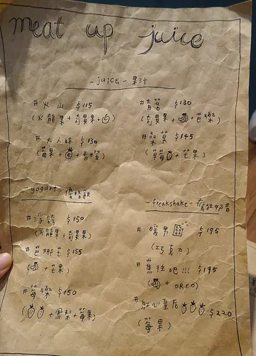 西門町是台北最具代表性的潮流文化聚集地,亦有適合打卡的特色餐廳。今次就來到以浮誇的早午餐和甜點聞名的 Meat Up 覓晌。餐廳隱身在舊樓的樓上,一打開升降機門就看到超搶眼的紅黑色系花卉壁紙。漸層玻璃門亦極具風格,店內更有很亮的圓形發光 logo 招牌。店內裝潢讓整體氛圍感超濃,很有韓式復古的風格。整體以紅色為主軸,每個位置看起來都超好拍,特別喜歡那個置物櫃。食物方面,當然要點一個超有視覺衝擊力的早午餐吧。培根起司舒芙蕾 (TWD 350) 配一杯飲品。像座小山的舒芙蕾,被淋上厚厚的起司醬,還有上層和中層各放了一隻太陽蛋。切開的時候能感受到舒芙蕾十分鬆軟,搭配濃郁的起司和微焦的培根,甜中帶鹹,還可以再加牛油和蜜糖,整個真的超邪惡。旁邊附了小份的沙律菜剛好可解一下膩。飲品選了無糖的紅茶也不錯。燻鮭魚沙拉 (TWD 370) 這是沒醬版本的,原本會有個柚香油醋醬。中心的三文魚卷成了一朵花,本身都夠鹹香,所以不加醬也可。搭配爽脆的生菜、車厘茄和麵包粒,也是中和主食不錯的選擇喔。甜品選了 莓有聖下 (TWD 220) 有生日牌的選項,送上來時還插上了蠟燭。如果是和朋友、家人或朋情侶來慶祝,儀式感真的滿滿呢。上層是香甜濃厚的布丁,質感綿密厚實得來又富有彈性,甜度剛好。再加上新鮮草莓、滑順奶油和蛋糕,吃起來很有滿足感。…查看更多