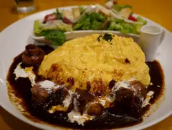 友人對於熱蛋糕有著極高的興致某次在IG上看到Mee's Café的照片就丟過來問我要不要去我雖然對熱蛋糕興致缺缺但漢堡排也是我的愛啊!!!火速定了時間就直奔Mee's Café了Mee's Café位在國父紀念館旁邊從光復南路的麥當勞巷子走進來就能看到Mee's Café招牌了戶外的日式庭院吸引非常多妹子拍照我們老妹反而是對餐廳外的餐點模型櫥窗更有興趣XD當天時間還早趁著店內人還不多的時候先拍拍照略帶復古的西餐廳風格,讓我與友人不斷唸著「真的好日式西餐廳」完全就是日劇「西洋古董洋菓子店」的場景感覺一個回頭就會看到帥哥執事過來服務 (誤我們用餐的目標很明確舒芙蕾歐姆蛋包與熱蛋糕是必點項目可惜當日不供應千層,我們只好換點義大利麵Mee's Café提供雙人套餐950元主餐、甜點跟飲料都是不限價位任選(熱蛋糕限單層)既然目標有熱蛋糕,我們當然也就選了雙人分享餐凱薩沙拉點餐時店員有特別提醒有顆半熟蛋沙拉份量還OK,只是那立著的蘿蔓葉食用較困難XD混合著半熟蛋的凱薩醬略微溫和配著鹹味培根入口滋味更豐富多蜜漢堡排舒芙蕾歐姆蛋焗飯這個舒芙蕾歐姆蛋也太可愛了!!!!ㄉㄨㄞ ㄉㄨㄞ的讓人忍不住一直想搖晃他蛋包底下就是漢堡排焗飯切開蛋包看一下,中間就是濕潤滑順的蛋白看著舒芙蕾的樣子一不小心就會誤會它是甜點但它本身完全沒味道硬要說的話就是鹹的蛋味無誤! XD混合著底下的漢堡排與焗飯一起入口雖然畫面有點不太美觀,但味道很不錯!!!底部的漢堡排醬汁給的很足夠,味道偏重一起吃時,上層的舒芙蕾蛋包平衡了整體的口感入口時不再死鹹,也增添了濕潤度雖然整體口味還是重,但卻讓人不會很排斥但還是建議與人分食會比較不膩口喔!!!卡波那拉培根蛋奶義大利麵這道算是朋友被我逼著點的餐點(誤培根蛋奶義大利麵最最最重要的就是這顆蛋了畫龍點睛的這顆蛋超級吸引人不過戳破攪拌至義大利麵裡就變得很普通了XDMee's Café的培根蛋奶義大利麵偏水一些調味OK,但麵條沒有巴著醬汁讓人有點失望我自己是偏好濃稠醬汁那一派 哈只能說這不是我的菜友人我對不起妳水果茶餐後喝一口酸酸甜甜飲料,再吃一口水果夏日的午後也清涼許多一大壺的水果茶好划算XD非常莓果熱蛋糕友人此行的大重點!!!!(雖然我一直覺得厚蛋糕就是拜拜蛋糕啊~ XD)套餐僅限單層,單點的話可以製作雙層熱蛋糕上方擺放著草莓冰淇淋、鮮奶油與水果外層也是散落各種水果是莓果醬切開來看一下Mee's Café的熱蛋糕屬於比較紮實款中間組織密度較高,有點像海綿蛋糕口味不會太甜,配著冰淇淋與鮮奶油倒是剛剛好只不過我與友人懷抱著不一樣的期待就是了我們以為會是軟綿綿較蓬鬆的感覺Mee's Café的熱蛋糕相對來講太紮實了忍不住心中OS「這就是拜拜海綿蛋糕啊!!!」但我們都好愛拜拜海綿蛋糕 (誤比起熱蛋糕,我們對舒芙蕾歐姆蛋的評價來的高一些至少一般世面上沒看過類似的模樣討喜也算好吃,價位也不算太貴這個還滿推薦體驗的Mee's Café Taiwan地址:台北市大安區光復南路290巷1號電話:02-2751-1615營業時間:週一~週五11:00-21:30/週六.日10:00-22:00 創作者介紹 小白兔 ♥ 劉嘎嘎 第四個小明…查看更多