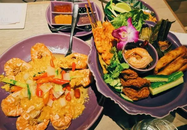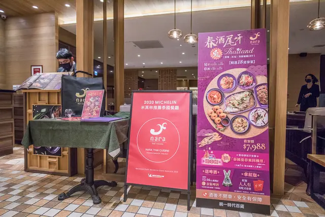 喜愛吃泰國菜的人不可能不知道NARA Thai Cuisine!NARA Thai Cuisine是連續三年榮獲米其林推薦的泰國餐廳,剛到台灣開店的時候完全是現象級的熱度,一轉眼竟然已經七年了,最近NARA Thai Cuisine台北忠孝 SOGO店改裝開幕,再來朝聖一下!風格超級美,還有開幕好禮跟限定菜,我覺得餐點價位合理份量也夠,大部分吃下來都蠻好吃,是台北泰國菜聚餐的首選啊!換新裝的NARA Thai Cuisine台北忠孝 SOGO店延續泰國皇族鍾愛的木質調風格,採用大面積的琥珀色玻璃,視野寬敞漂亮,不改原先的主視覺配色,木質調配上紫色的沙發與餐盤就是NARA Thai Cuisine正字記號。吧台設計很有巧思,牆面上鏤空的窗花雕飾顯得貴氣又有氣質,用餐質感相當好。泰國香米飯每人$40,米飯都是可以無限續的黃咖哩軟殼蟹$495這道軟殼蟹可以說是我的NARA Thai Cuisine NO.1 ! 吃過一次念念不忘,每天都魂牽夢縈想再吃(浮誇)!軟殼蟹炸得超好,外表酥香蟹肉多汁,黃咖哩醬更是精華,濃郁香氣包裹在螃蟹上太對味了,這道也是超級白飯殺手。鳳梨炒飯(雞肉)$340泰式炒飯也是必點的吧!炒飯也是偏重口味,米粒顆顆分明,軟硬適中,搭配腰果等配料,口感豐富度更高。冬蔭功湯$365全場一致大讚的冬蔭功湯,風味極致濃縮,酸辣帶勁!是我喝過名列前茅的,5人一起享用,大約一人一碗。金錢蝦餅$385第一次吃NARA Thai Cuisine的金錢蝦餅,表現也很優秀!我覺得比其他家都還要更厚實,根本就是甜甜圈了XD! 表皮薄酥,咬開內餡滿滿鮮蝦甜味,多汁軟嫩,超喜歡這口感。泰南雞肉串$280雞肉串的肉質不錯,沾上特製醬料清爽不膩,有南洋風椰絲香柚魚$495這道是全台獨家菜色,如果每次到泰式餐廳都點檸檬魚覺得很膩,那可以試試看這個。使用新鮮鱸魚佐特製柚香醬,魚肉是整條炸過的,比較有口感,配料是葡萄柚,配著吃帶點酸度和果香,第一次看到這種搭配。芒果冰沙$150酸酸甜甜,解膩消暑!高麗菜(蝦醬)$220爽脆辛辣,非常下飯!綠咖哩雞肉$340超級超級濃郁的綠咖哩,風味很厚重,而且這可能是今天辣度最高的一道,不吃辣的請避開~!正宗泰式風味,一匙就能配一碗飯!八果椰子冰$320這道五顏六色的泰式冰品一上桌,哇整個被可愛死!也是全台獨家菜色喔一份是四球椰子冰淇淋(可再加點),有玉米、葡萄乾、花生碎等等共八種配料,想吃什麼料自己加,史上顏值最高的泰式甜點!最後特別介紹一下自備酒水的費用,這邊開瓶是收杯子清潔費一杯$80,根本太佛!!推薦酒鬼們帶自己喜歡的酒來聚餐XDD今天和友人約在NARA Thai Cuisin,就是幫我本人慶生啦!這次聚餐吃的超級飽足,也嘗試了之前沒吃過的菜色,以下是我個人最愛的給大家參考:金錢蝦餅、 冬蔭功湯、 鳳梨炒飯、 黃咖哩軟殼蟹,把握5/31前開幕活動,消費滿$999還有送綠咖哩雞肉禮物券,快來吃一波!…查看更多