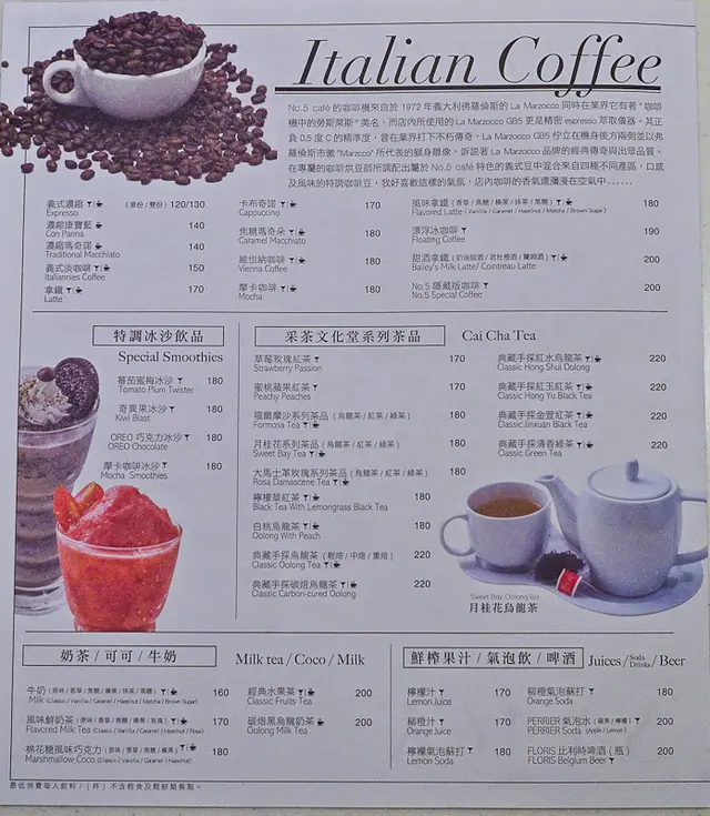 交通方式:捷運板南線市府站1號出口步行5分鐘(1號上來右轉→直走過馬路→右轉直走30秒)美好的假日早晨我已坐在有著大片落地窗的咖啡廳裡,搭配焦糖瑪奇朵加一份濃縮窗外陽光耀眼、藍天白雲,綠油油的行道樹被微風吹著搖曳生姿耳機傳來悠悠的鋼琴爵士,我手指輕快地在鍵盤上敲打著沒有出門的假日我都是這麼度過的,i'm loving it昨日我與許久未見的朋友相約基隆路上No.5 Cafe,據說這是一間貴婦非常喜愛的咖啡館最知名的莫過於豐盛早午餐與藍帶鬆餅其實我follow粉絲頁已經有段時間,只是還沒預約就先被邀請了真是受寵若驚不過試吃文並不是業配文,不接受審稿與自由撰寫是我事先都會與業者說明的內文為真實心得,請各位放心閱讀No.5 Cafe靠近阪急松菸咖啡廳一級戰區,周邊競爭著實激烈能夠吸引媒體關注採訪相信有它的優勢,看樣子鬆餅真的可以期待一下XD從這裡走到松菸不過5分鐘的距離,安排看展後來個下午茶倒是不錯,交通上也相當便利入內後首先被牆上繽紛的彩罐裝飾吸引去目光原來No.5 Cafe是知名茶品-采茶文化堂延伸出去的咖啡廳品牌采茶以時尚的黑色密封罐保存茶葉,獨特的上掀蓋設計還擁有專利全系列茶品皆來自台灣南投山區,種類有福爾摩沙、大馬士革玫瑰、月桂花、茉莉蜜、檸檬草蜜等系列以融合東西方文化,重新定義喝茶的概念No.5 Cafe整體感覺精緻高雅,全店只以黑白兩色為主軸連白牆上的攝影作品也以黑白呈現,簡約中帶有質感,一派時尚都會風格油然而生一目了然的正方形格局,座位約可容納35人裡頭還有一間小包廂可以提供給喜歡隱私的客人,礙於當時有人不好拍照下次就與姊妹約在這裡好了,有個包廂才好大聊私密八卦菱格鍛面座椅透著法式優雅,個人很喜歡像這樣低調質感的配色要特別提一下No.5 cafe的咖啡機,品牌是來自義大利的La Marzocco在業界有著咖啡機中的勞斯萊斯美名在我去過的咖啡廳中也有不少都是使用La Marzocco,確實是一台很厲害的機器另外,如果想要點茶品的話,不只可以聽店員建議,還可以到櫃檯這裡先聞聞看店家貼心放置了聞香罐供客人挑選,這樣比較不容易出錯,可以挑到自己真正喜歡的茶No.5 Cafe全天候供應早午餐、義大利麵、燉飯、鬆餅、沙拉、鹹派早午餐包含果汁與咖啡或紅茶,更換成其他飲品可折抵$80義大利麵、燉飯可加價升級套餐,+$80(沙拉&麵包)或+$120(沙拉&飲料<美式咖啡or紅茶>)店家無收取服務費,點餐請至櫃檯,餐具、倒水自己來喔▼菜單分享▼ 早午餐附贈開胃檸檬特調,酸甜比例恰當,很好喝我們點了美式經典早午餐($329)&義式什錦蔬菜烘蛋($269)我跟朋友都被大份量嚇到,覺得也太划算了吧XD,我什麼都不怕啦就怕餓到美式經典早午餐絕對飽足的美式經典包含佛卡夏麵包、德式火腿、炒蛋、培根、玉米鮪魚醬、生菜沙拉、香吉士,以及搭配沙拉的胡麻醬汁香腸脆口多汁、培根鹹香柔軟好入口,不會乾扁或偏硬,炒蛋濕潤滑順、味道清爽,我喜歡搭著玉米鮪魚一起食用,更難得是吃來不覺油膩佛卡夏麵包在製作時就已加入橄欖及香草,因此本身有淡淡香料味我將玉米鮪魚抹一點在佛卡夏麵包上吃也很不錯唷吃早午餐很少看到搭配香吉士,果肉香甜多汁,而且已被貼心切成小塊方便入口啦有別於在外面吃過的美式經典早午餐,No.5的美式經典特別清爽,吃完不會感覺負擔罪惡XD義式什錦蔬菜烘蛋接著是我最喜歡的烘蛋,以鐵鍋裝呈食用時請小心,燙到可不是開玩笑的啊不知道用了幾顆雞蛋製作,另加入起司、蘑菇及多種蔬菜外觀蓬鬆飽滿,口感滑嫩鬆軟,口味上算是很清爽的,當中又帶著起司淡淡奶香,好吃配菜同樣是佛卡夏麵包與生菜沙拉 麵包切成長條塊狀,還沒吃就先飽一半;搭配的醬汁是番茄沙沙醬,味酸甜相當開胃其實吃完烘蛋已經很飽了,但主廚推薦我們一定要試試鬆餅堅持每日現場製作,使用來自日本的鬆餅粉、牧場雞蛋以及無鹽奶油調製喔喔重點是裡面有麻糬啊啊啊~會不會太heavyXD鬆餅口味繁多,比較特別的有棉花糖鬆餅、紅豆抹茶鬆餅、肉桂蘋果鬆餅...覺得好像每個都不錯呀後來看到有季節限定四字的草莓鬆餅,幫助我們下了這個困難的決定我對限定二字毫無招架能力XDDDD花瓣型鬆餅上頭淋了蜂蜜與店家自製鮮奶油,最後放上嬌豔欲滴的新鮮草莓嘖嘖嘖~看起來既豐盛又heavy淺嚐一口,鮮奶油竟十分輕盈且不甜,還挺好吃的(吸手指)強烈建議要趁熱吃喔,外皮酥脆、內餡紮實,麻糬Q軟帶彈性這塊鬆餅我們吃了好久,放到冷了吃也依舊Q軟其實如果不添加糖粉會更好,蜂蜜的甜度與香氣已足夠經典水果茶使用采茶文化堂的福爾摩沙系列茶品,加入水果現煮,好喝美式熱咖啡附餐熱美式還挺大杯,中深焙咖啡豆來自四種不同產區微苦不澀,尾段帶著些許酸度,淺淺的朋友覺得苦,我倒覺得挺ok,跟我平日裡在喝的口味相去不遠No.5隱藏版咖啡隱藏版咖啡果然有亮點,味道真讚主廚小施魔法添加一味之後整體風味都提升了,層次豐富鮮明我就不破梗,讓我賣個關子吧你們快找機會去喝,必點啦! 完食心得:No.5 Cafe交通十分方便,離市府轉運站、阪急百貨、松山文創只有5-10分鐘距離早午餐內容與份量頗有誠意,價位上也合理今日餐點我最喜歡義式烘蛋與草莓鬆餅,隱藏版咖啡好喝又有創意不過用餐當日似乎是人手不足?幾次想找店員卻等不到,店員個個忙碌無暇注意客人需求上餐速度也相對慢了些,店家表示由於餐