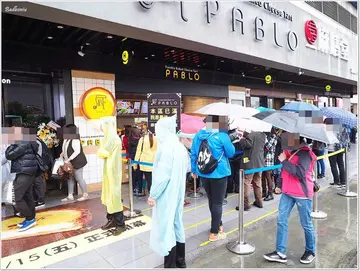 這禮拜最矚目的新開店、臉書一直被洗版的,莫過於這家在日本必買必排的PABLO半熟起司蛋糕店終於來台灣開分店了!這家店在日本時咱們家已經有吃過了(食記參考:【食】【日本】PABLO半熟起司蛋糕(東京澀谷店 ),一直唸唸不忘,但是剛開幕那天聽說要排上四小時,著實讓人怯步!不過波妞媽實在太想吃了,所以還是決定還是去現場排排看,買不到就波妞爸留在那邊等,咱們先回家。本來以為要排到天荒地老的,居然還蠻順利就買到了呢!可以這麼順利,大概歸功於今天是個下大雨、且天氣冷冷、正適合躲被窩睡好覺的星期天早上吧?我們到的時候大約10:30,外帶區排得不短,內用區居然還可以看到入口;一時間還有點懷疑自己是不是排錯地方了?不然怎麼前面的人這麼少呢?11:00 和億商場開門了,終於可以進去一瞧廬山真面目,好興奮XD 除了一樓的外帶區外,內用店的左手邊也有一個外帶櫃檯,想必是要用來分散一樓排隊的人龍。店家會視狀況將一樓的排隊人潮往B1的外帶區疏散,所以如果要買B1的外帶區,一樣是要在1樓排隊的唷~外帶區的商品超多的,款項多到讓我懷疑日本的PABLO也有這麼多商品嗎?排隊排了這麼久,看到這些商品應該很失心瘋吧~B1的右手邊就是內用區,今天內用區排隊的人比外帶區少很多。11:00店一開,我們因為排得還蠻前面的,很順利地在第一輪可以入座了。店內裝潢還蠻漂亮的,整個還蠻日本的感覺,也很適合情侶約會或姊妹淘的下午茶。全店唯一布沙發椅座位區,看起來好舒服、好想坐。店員會到你的座位旁邊點餐,結帳再去櫃檯結帳即可。櫃檯後面就是半熟起司蛋糕出爐的地方,想到等下就可以吃到朝思慕想的半熟起司蛋糕,好開心!櫃檯的冷藏櫃內也有食物的模型,每一個看起來都好想吃。內用區可以不用去外帶區排隊,在內用櫃檯結帳的時候就可以順便外帶唷~如果需要外帶,店員會拿外帶的MENU給你參考。這一份是內用的菜單,內用有低消每人250元,內用還要再另加10%的服務費。點好餐,咖啡先上桌;還好這邊的低消不是一人一杯飲品,我們只要點一杯飲料即可。波妞爸的熱拿鐵,喝起來普普通通,不過上面有簡單的拉花。 其實在日本很少喝到合口味的咖啡,除了「森の時計」與「藍瓶子」外,但我們家對咖啡研究也不多就是了再來是必點的招牌原味迷你起司塔上桌了!本以為要等上一段時間,不過我們可能比較早就點餐了,所以感覺比想像中快上桌。內用是 迷你版,所以只有4吋大小,比外帶版的小上一號。旁邊還附奶味濃郁的香草冰淇淋。因為是現烤的,所以整個起司塔是熱熱的ㄟ!跟我們在日本外帶時冰過的口感不一樣,所以感覺很意外,居然是熱的。因為是熱的,所以裡面的起司是軟軟、熱熱、會流動的,甚至還會有點燙口!起司香氣超濃郁!旁邊的酥皮也因為剛出爐,吃起來酥酥片片,雖然很有蛋塔的感覺,但跟蛋塔又是不同味道。再來是海外版、且內用限定才有的切片金牌起司塔(莓果口味)。上面的莓果幕斯還不錯,酸酸甜甜,中間的起司蛋糕很起司,而且因為冰過,所以吃起來很有冰淇淋的風味。再來也是人氣必點的抹茶迷你起司塔,一樣附上一球香草冰淇淋。這個口味我們在日本沒吃過,是第一次看到。抹茶上面還有蜜紅豆,還有一些金箔,很日本。內用的起司塔都是現烤的,所以抹茶的內餡也是會流動的抹茶起司。更特別的是內餡還藏有白玉團子ㄟ!吃起來好有意外的驚喜。因為中午時間,怕波妞想吃鹹的,所以另外點了一份庫克熱三明治。可以看到表面滿滿的起司,所以起司香起超重,很有土司版PIZZA的感覺。切開後中間還有火腿夾層,旁邊的土司邊烤得酥酥的,只可惜點太多東西了,這個三明治到最後根本吃不完。(內用吃不完的完全不能打包喔)店員還會隨機拿出看板讓客人可以拍照互動,波妞一秒鐘就變成半熟起司塔了XD其實內用現烤的吃起來雖然也不錯吃,但還是比較想念我們在日本外帶時冰過的口感,所以後來我們又外帶了兩個回家。因為外面在下雨,所以果然像日本一樣貼心,外面都會再另外附一個塑膠袋保護唷~出來的時候,外面排隊的隊伍大概就這麼長。問了問工作人員,這樣算是人少的,剛開幕時,人龍繞了好幾圈!果然天氣不好加上昨晚選舉激情也是有影響的。整體來說,還是覺得外帶的口感比較習慣,是少數外帶比店內好吃的特例XD 而且所有的產品幾乎都有起司,然後排隊這麼久,又很容易失心瘋點了一整桌,所以到最後會吃得很膩,而且根本吃不完,果然不適合當午餐來吃@@ 所以內用雖然氣氛不錯,但個人還是覺的外帶就好,難怪外帶區還是比內用區排得長上許多。地址:台北市中正區忠孝西路一段36號電話:02-23703678營業時間:(外帶)10:00-22:00 (內用)11:00-22:00…查看更多