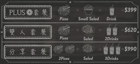 Plus Pizza (台北) 網址: https://s.openrice.com/cHRSm02Sfm600 地址: 台北大安區光復南路260巷23號 電話: +886 0227763012