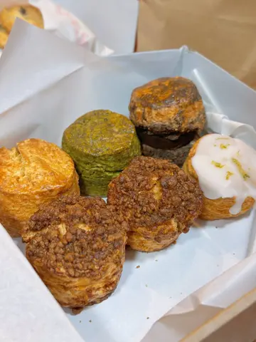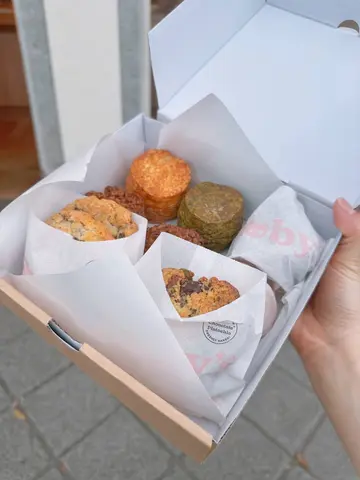 每次去台北都買悄悄好食所以這次試這家 @thebakingmissruby店面裝修是我喜歡的風格,簡單明亮的小清新文青風。司康和餅乾味道蠻多,有點選擇困難症🙈…不過為了要盒裝所以多買了幾個口味~(包裝紙盒設計蠻好看💕)🔅原味濃奶酥 (NT$65)🔅小山園抹茶 (NT$75)🔅生巧克力大理石  (NT$90)🔅檸檬清香 (NT$70)🔅黑糖豆乳脆脆 (NT$75)司康不算很香牛油味,口感稍微偏乾,每種口味的味道不算很突出,不過回烤後挺酥脆🔅開心果巧克力美式餅乾  (NT$110)🔅誇張熔岩黑可可胖餅乾  (NT$110)餅乾價格不算便宜,雖然不大塊但有厚度。開心果味不太濃,不推。熔岩可可比較出色,但一個人吃一塊有點膩💬整體覺得可試可不試,不會特地去買,如果喜歡試不同口味的可以一試查看更多
