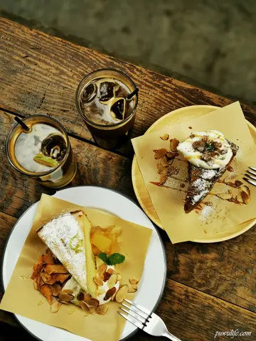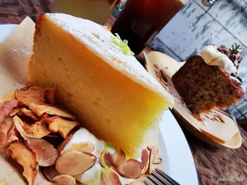 小廢墟咖啡(Ruins Coffee Roasters)位於木柵景美溪畔,是一間你不刻意尋找就會很容易錯過的咖啡館,取名小廢墟不是浮誇,原址真的是一間廢棄倉庫,而且廢到不行!但現在,迷人的可以👍2013年,我第一次拜訪鄰近小巨蛋、位於健康路上的小破爛咖啡(CAFE JUNKIES),很喜歡小破爛咖啡無論是在裝潢、服務或餐點上的用心,之後還陸續去過幾次,沒想到若干年後它不見了!想不到,如今的小廢墟,原來竟是小破爛的延伸!僅僅是站在屋外透過玻璃窗窺視,屋內斑駁的水泥牆面、吊燈與時鐘,我就曉得小廢墟會是我的菜,它廢的超有風格、超好看,按快門的手從未停下來過。屋內的挑高明亮讓人眼睛為之一亮,一點沒有廢墟的破敗或雜亂感,我可以在這待上一天。老闆用自己的雙手,為小廢墟進行了約6個月的翻新,利用回收舊木、家具製成櫃台與桌椅,刻意保留部分外露的水泥鋼筋,並在屋內留下當時使用的工具,結合大量木工,搭配暖黃光鎢絲燈,使廢墟有了新生命與溫度。閣樓,是我認為在小廢墟的最精華,如果時間允許,請你開店前就來守候。閣樓空間擁有絕對的居高臨下視野,尤其要把握左前方「海景第一排」的座位🤣,需注意右側座位起身時無法完全站立喔。⚠不適合長輩與兒童⚠小破爛(Junkies)招牌擱置角落,不知是刻意還巧合,前方竟擺了白蠟燭,頗有紀念的意味。Yes,就是這個位置,簡直是我理想中書房的樣子XD,開門前就來等待果然值得!最喜歡的,就是「海景第一排」俯視整個工作區及吧台的開闊視野,只是看著店員專注沖煮咖啡、製作甜點,或是與客人之間的互動,都讓人感覺療癒放鬆。小廢墟的咖啡與蛋糕小廢墟menu以現場為主,因為咖啡品項很多種,也常常更換,所以我就沒拍了!大致上分為手沖單品、義式咖啡、茶與氣泡等飲品,豆子為店家自烘,另有販售咖啡豆與周邊商品;蛋糕選擇很多樣,每一款都是店家handmade且當日限定,賣相誘人且真材實料。蜂蜜檸檬咖啡(左)/美式冰咖啡(右)我個人特別喜歡蜂蜜檸檬咖啡,顧名思義是結合濃縮咖啡與手工製作的蜂蜜檸檬,濃縮的醇苦與蜂蜜檸檬的酸甜完美相融,沁涼清爽,好適合夏天!檸檬蛋糕蛋糕口感鬆軟綿實,帶有淡淡檸檬清香;鮮奶油倒是意外地清爽不膩,嘴裡喊著怕胖但還是一口接著一口吃光它;隨蛋糕附的蘋果乾很好吃,偷喵到是來自好市多的產品(嘿~居高臨下的好處XD)。蕉桃牌包裹著核桃的香蕉磅蛋糕一直是我最愛,口感紮實不乾口,邊緣帶著因烤過而有的酥脆,上桌時還溫熱著,建議要趁熱食用。入夜後的廢墟,自帶催化浪漫情調的作用,從白日坐到黑夜,我完全明白為什麼處在偏遠又不起眼位置的小廢墟會如此受歡迎。小廢墟是我會願意再訪的店家,推薦給喜歡粗曠工業風或工地風的朋友們🤣,假日最好開店就來,才能搶到海景第一排喔XD…查看更多