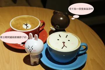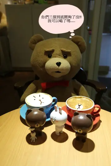 天啊我幼稚死了幼稚死了幼稚死了某天友人上網時發現有一家咖啡廳作出熊大與兔兔拉花咖啡就趕緊拿給我看不看沒事,看了我就不舒服想馬上噴去親自瞧一瞧才甘心畢竟~我對熊大兔兔是有感情的.....,Sam咖啡位於南京東路五段250巷內,附近沒有捷運,搭公車要在南京公寓站下車,走過來大約8分鐘老實說這間咖啡廳的外型一點都無法吸引我,位置也不是特別好,要不是有特色拉花我可能永遠不會進去XD我有事先電話預約,店家安排我坐窗邊,與這兩隻一起坐哈哈哈哈哈哈哈哈進到店裡就立馬把玩起Ted與毛怪,忙著幫它們橋pose拍照這樣整個很busy,弄了大概有10分鐘....不過實在是太可愛了啊你們說是不是!!快門non-stop啊Ted因為熊麻吉這部電影紅透半邊天,那倒楣的八字眉讓它看起來永遠很憂鬱又很好笑等待咖啡的時間來看一下店家環境好了(菸)吧台與開放式廚房佔了整間店有三分之一,很家庭式的風格四周堆了很多東西,有種說不出的凌亂感...不過整體還是相當乾淨明亮的接待我的小姐也很客氣有禮,看我在那邊弄很久只是一個勁兒的笑XD全店大概就這樣子,約可容納20-25人左右,可以看到除了毛怪、Ted還有拉拉熊在入口進門的地方還有大眼仔與其它可愛小公仔喔科科~這是之前全家商店推出的熊大&兔兔筆我也有XD一旁還有史奴比與Teddy Bear(?),就是一間企圖以各種卡通人物收買人心的咖啡館,意圖相當明顯不過就是奏效了,就是有像我這樣的人啊.....哈哈哈哈哈哈哈哈Sam提供的餐點非常多樣,咖啡、茶、果汁、潛艇堡、總匯三明治、鬆餅、沙拉、簡餐飯麵與蛋糕甜點價格非常親民也不收服務費,開水自己倒不用客氣,當然也有free wifi,低消是每人一杯飲品我想~最可惜就是限時2小時吧熊大歐蕾咖啡$100歐蕾咖啡就是奶比較多的咖啡,也可以說就是拿鐵啦!表情使用巧克力醬畫上的,可以放心飲用哈哈哈哈哈哈哈超像的啦!!!一臉ㄘ凹ˋ賭賭的熊大咖啡到手兔兔卡布咖啡$100卡布就口感苦一些,奶泡打得很細緻耶~你們覺得像嗎?眉毛好像可以再長一點對不對?鼻子的範圍好像要再大一點吼XD光這兩杯咖啡就拍了不知道幾十張照片,超神經的,女人的錢真好賺ㄟ!!!這是一篇很幼稚的咖啡文章,沒有什麼參考價值哈哈哈哈哈,純自爽(菸)掰!…ดูเพิ่มเติม