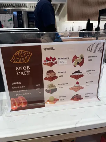 近年來可頌人氣直直攀升,Snob Cafe 就是很受歡迎的專賣店,雖坐落於台北信義區, 但價格上屬實惠親民路線,標準巨大可頌, 除了選用法國產地奶油,還有可頌做發想的個人份甜點 ,除了在信義區基隆路本店可以吃得到外,Snob Cafe 現在也進駐微風南山廣場B1在信義區逛街走路就買得到, 停車也變得更方便,而且營業時間也比本店來的更晚, 下班也買得到~關於 snobcafé 微風南山店Snob Cafe 微風南山店以外帶店做規劃,保留了大部分經典可頌, 蛋糕還有輕食可以外帶享用,位置就在B1超市外 , 把所有製作過程搬進百貨每天現場製作全時段不斷出爐 , 各種口味非常齊全除了可頌系列外, 特別安排咖啡師駐場 ,提供完整的咖啡飲料系列,還有瓶子很漂亮雞尾酒~雖然是以外帶店形式經營,不過微風南山這邊有提供小小內用區域,就在店前座位特別規劃給Snob Cafe 客人低消為1杯飲料 , 想要現場享用也是沒有問題,不過不提供保留座位服務, 以現場供應為主~現場的外帶有多種不同口味的選擇, 原味只要70元起也可選擇各種不同口味個人份甜點,直接提供盒子可以帶著走回家享用,本店原本各種人氣選擇幾乎都有供應~Snob Cafe 主打就是以小批製作,每天各時段不斷出爐確保新鮮 ,選用法國奶油, 各種不同的頂級原料 ,簡單就是最美味 ~原味可頌 70店內最經典的選擇, 也是很受歡迎的外帶本身並沒有過多糖分,可以品嘗可頌的千層蜂窩口感,外酥內柔軟, 其實現場看大小真的蠻大女生吃一顆絕對會有飽足感的等級~蝴蝶結鮮奶油可頌 季節水果 150蝴蝶結系列可以搭配成套餐也可以單點,可頌多層次製造成蝴蝶結造型非常特殊,鮮奶油可頌搭配季節水果,秋天的尾聲搭配是鮮甜葡萄藍莓,接著步入冬季絕對就是搭配草莓,奶油的口感不會太甜, 扎實而濃厚~冰滴咖啡 | 北海道四葉鮮乳奶霜 | 沖繩黑糖 200微風南山店獨家冰滴系列,除了品嚐需要時間淬鍊的風味,咖啡師特別調製的飲品也非常有特色~打開蓋子發現店家是選用冰球, 透明通透漂亮,奶霜不會太厚重但有一點微甜,還有沖繩黑糖獨特風味,重點還是可以品嘗到冰滴咖啡純粹極佳口感~提拉米蘇可頌 150可頌上滿滿提拉米蘇鮮奶油然後撒上可可粉層次豐富甜而不膩, 可頌取代了傳統手指餅乾提供提拉米蘇特有的咖啡酒與奶香氣息,打造出混搭風格 ~紅心芭樂雞尾酒 含酒精Snob Cafe 除了咖啡外也玻璃瓶裝的雞尾酒,想要來點大人的微醺滋味也很推薦,紅心芭樂雞尾酒芭樂味真的突出,口感上也不會太甜, 酒感不會太重~未滿18請勿喝酒酒釀黑櫻桃苦甜厚黑巧克力 180如果喜歡巧克力蛋糕又想吃單片,酒釀黑櫻桃客人真的大推,酒味很夠, 巧克力也非常真材實料尤其是可以吃到內餡跟外層有脆度巧克力,中間慕斯部分也非常紮實,甜度會稍微高一點,推薦可以搭配無糖的咖啡就很完美~snobcafé 在信義區起家,可頌為主題的早午餐店現在在微風南山店也可以吃得到,覺得他們甜點除了很華麗也真的真材實料,而且單價不會到非常高,喜歡可頌下次來微風南山也來點杯咖啡坐下來試看看吧~…查看更多