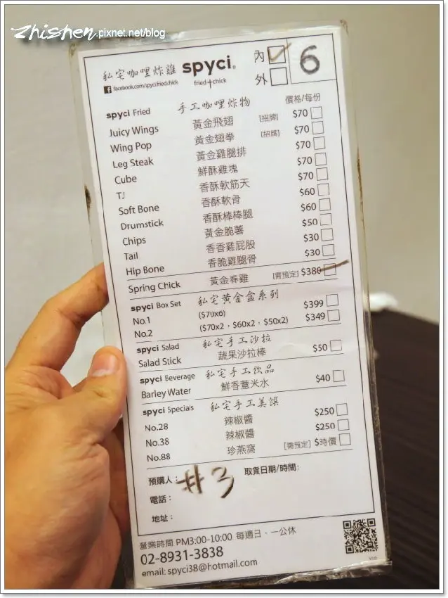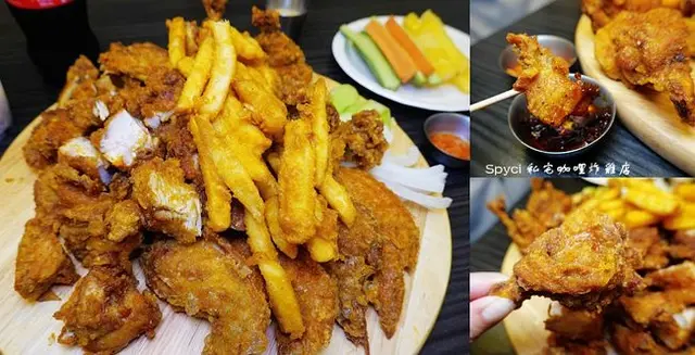 台北景美超好吃炸雞店推薦【Spyci 私宅咖哩炸雞店】,很多人大推招牌黃金春雞,可惜我們沒有預約無法吃到,不過,除了春雞外,其他的炸物也都很好吃,搭配老闆自製的辣椒醬、參巴醬更是一絕,讓人一吃就上癮!【Spyci 私宅咖哩炸雞店】鄰近捷運景美站及萬隆站,步行大約10分鐘,距離景美夜市也不遠,當天我們吃完炸雞後還到夜市走走店家前面就是公車站牌:景興國中站,附近有路邊停車格,交通便利點餐櫃檯,內用或外帶都需要至櫃台點餐,有跟外送平台合作,不方便前往可以直接叫外送店家老闆原先在科技業工作,後來因為一場病而轉換跑道開了【Spyci 私宅咖哩炸雞店】,由馬來西亞辣椒醬做起,然後引進馬來西亞特色炸春雞,利用小時候吃過的馬來西亞咖哩,加上薑黃與紅椒粉變成鮮豔的紅色咖哩,撒在醃製過的雞肉上,是全台灣僅有的特色咖哩炸雞!內用空間不大,出入口也很迷你,不過有內用空間就值得讚許了!桌位數僅僅三桌,不過炸雞大家都是外帶居多,所以我們當天也很幸運有桌位可以內用店內牆面上有滿滿的老闆小孩畫作,畫風活潑有趣,真心覺得好厲害呀!店內有提供開水手工製作的辣椒醬及餐巴醬,附有小碟子,沾多少拿多少【Spyci 私宅咖哩炸雞店】菜單及價格品項選擇還不少,除了炸物店常見的飛翅、翅拳、雞腿排、雞塊外,還有軟筋天、翅腿玉之筋、黃金龍鳳掌、軟骨等,招牌黃金春雞記得要預約另外還有沙拉棒、薏米水、辣椒醬及參巴醬等我們當天點了六樣炸物,通通裝在木盤上,看起來特別霸氣,這樣的裝盤方式個人很喜歡,很歡樂的聚餐氛圍隨炸物附上洋蔥及大黃瓜切片,清脆爽口、解膩,大黃瓜沾辣椒醬或是參巴醬也很好吃吃炸雞必點的可樂,還有小朋友指定要喝的柳橙果汁招牌手工薏米水也大推,使用小薏仁、香蘭葉和些許糖煮成,帶有微微的甜度,清甜消暑蔬果沙拉棒 $50很推薦這盤也必點,有小黃瓜、紅蘿蔔、鳳梨和口感像水梨的豆薯,配有沙拉醬,每一樣蔬果都香甜、清脆爽口,可以解炸物的膩看了菜單每一樣都好想點來吃吃看,後來點了黃金飛翅、黃金翅拳、黃雞雞腿排、鮮酥雞塊、香酥軟筋天及黃金脆薯,炸雞端上桌時上面灑有紅紅的辣粉,吃起來帶有香氣但其實不辣耶,只有細微的辣度,不能吃辣的應該也能接受,若真的不想要辣椒粉記得先告知店家人員【Spyci 私宅咖哩炸雞店】炸物外觀很誘人,漂亮的金黃色澤,是馬來西亞咖哩加上薑黃與紅椒粉特製的,沒有過重的香料味,咖哩味道不會過於濃郁突兀,可以吃到雞肉原本的甜味無論飛翅、翅拳、雞腿排或是雞塊吃起來都鮮嫩多汁,外酥內嫩讓人一吃就上癮,特別是翅拳還將骨頭上的肉集中,更方便拿取食用,香酥軟筋天是雞腳和小腿間的腳輪,吃起來有雞軟骨的脆度和帶膠質的Q彈感,特別適合下酒,脆薯大人小孩都愛吃,香酥脆口一上桌就秒殺!偏紅色的是辣椒醬,是用生的朝天椒、蒜、薑製成,口味較辛嗆,參巴醬則有有加進小魚乾、蝦米等炒過,更具香氣,兩款醬料都有單獨販售炸物無論沾辣椒醬或是參巴醬都很好吃耶,很香不會太辣,辣度對我而言都算是輕微,但香氣很足,也讓炸物吃起來較不那麼膩口,兩種我都很喜歡,輪流著沾真的會讓人一吃就上癮的馬來西亞特色咖哩炸雞,若不是距離有點遠真的會想常常吃啊,要比一般的炸雞好吃許多,獨特的辣椒醬及參巴醬更是讓炸雞美味更上一層樓的幕後重要推手!很可惜這次沒有吃到黃金春雞,下回一定要預訂起來!…查看更多