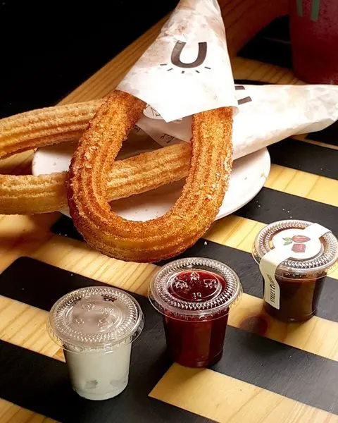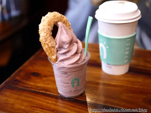 午後打算找個地方坐下來休息,國父紀念館鄰近的咖啡廳不少,但要沒客滿的店,就得碰碰運氣,剛好street churros還有位子,這間是從韓國進駐台灣已經一段時日的吉拿棒(圈)專賣店,較少去關注這類像是網美系會喜歡的店,但其實還不錯吃。幾乎都會點的是A Chu(阿啾),就是冰淇淋配一根老衲的棒棒,當日是酸甜的黑莓口味冰淇淋~好吃,棒子可以選擇肉桂或者堅果穀物,堅果穀物香氣淡淡der,因為沒吃過多少吉拿棒,所以對它的印象是糖粉多而且肉桂味重、帶點兒韌度的質地,韓國來的這款倒非重口味,由於現炸起來口感挺好,外層酥鬆、內裡有彈性,不會潤潤的,並且油味算是清爽,吃完其實有點想再去點一份,但得在外頭排隊,雖然沒幾個人可是要等一段時間。飲料(黑糖拿鐵)就蠻一般的了,內用還是紙杯阿~粉專網友推薦了師大附近的一家吉拿棒,找機會再去吃吃看好了。…查看更多