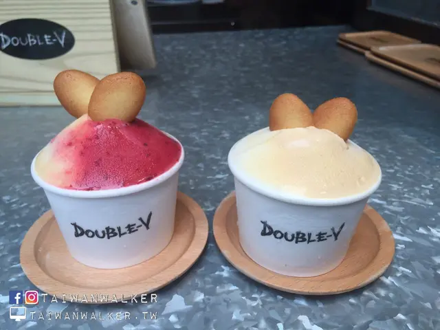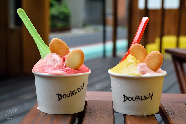 林森北路條通內有一家gelato聽說不錯,就在紀鳥對面,晚上吃了點東西散步過去,沒料到人還是挺多,大概夏天晚上仍是悶熱都想要消暑吧。一杯120元可選1~2種口味,排隊的時候看到店員在旁邊介紹,9種口味裡有幾樣是偏酸的水果風味,如百香杏桃、桃栗...近期的中元節限定款有兩種,一是平安茶,即桂圓紅棗和洛神,源起於大稻埕霞海城隍廟的供茶,二是平安四果,蘋果、橘子、桃子、奇異果,取其諧音平安大吉討喜吉利,黑可可是沒加牛奶的,我選了黑可可和平安四果的雙拼,有點兒對比性的組合。插了兩片薄脆的貓耳餅乾,平安四果的滋味就是酸甜、以及淡淡果香,吃起來並非很酸也不到很甜,但明顯可感受出是幾種水果混合的香氣,整體還是稍覺平淡,也許選平安茶會比較有特色吧我想~倒是黑可可相當不錯,中低甜度、香氣十分厚實,微苦味對我來說很剛好,既濃醇而又不會太過(有些巧克力是尾韻的苦特重,久久才散去),至於質地的乳化柔滑則與預期差不多,總之如果人有在附近,就會想順道上門試些口味的店,旁邊還有洗手台可用,也不怕沾手了。話說回來,想起我家裡附近超過10年的gelato老店姬璃鷗,以這次造訪Double V來看,姬璃鷗也許口感質地沒那麼細綿,但風味的表現上可不見得較差,新竹的美食綠洲呀。…查看更多