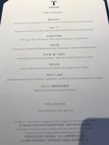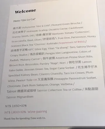 a special place to enjoy with loved ones and friends old or new, with a common love of foodour group of eleven were accommodated with great hospitality and thoughtfulness; changing numbers, different dietary needs and preferences even during the mealthe front of house staff treated us all with warmth and were patient with our lack of mandarin language skills the service throughout the meal accommodated for our long table arrangement the highlight was as it should be, the mealeach course was a delight and though the flavours and textures didn't touch every palette at the table, the variety and sincere intent to celebrate taiwan's homegrown produce was keenly felt the overall impression was one of freshness, delicious and comforting flavoursa group of us commented that sometimes, multi-course meals would be a struggle towards the end, but this was just rightit was completely enjoyable and did not feel like an effort to enjoy each course till the endthe plating was approachable and absolutely instagram-ablethe four wine pairings worked well with the meala final highlight of the experience was having the chef and pastry chef sign our menus, and coming out to talk with us, after watching them working with such concentration and purpose, with their team in the kitchen 'fish bowl'the whole restaurant team gave us all a memorable evening - introducing us to wonderful local produce through the meal and also to warm and kind taiwanese hospitalitywould certainly come back and recommend to friends and family wanting to enjoy a special meal to be remembered查看更多