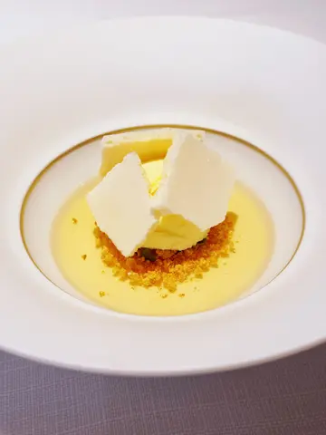前兩個月台北市新開了一家被媒體稱為“米其林星級的台魂法菜”,聽起來就很誘人,照片看起來也相當漂亮,讓人好奇得很,想知道到底是什麼味道,於是就約了好友一同前往。餐廳名叫『Taïrroir 態芮』,位於大直,就在RAW的旁邊,那一棟大樓目前也有許多知名餐廳進駐。『Taïrroir 態芮』的裝潢還不錯,據說是以台灣的山巒、海景的弧線等為設計靈感,挺別緻的。 這裡提供的這款Speyside Glenlivet 氣泡水還蠻少見的。 (未成年請勿飲酒)餐廳提供的餐前酒。 麵包還不錯,服務生說是吳寶春師傅特地幫他們餐廳做的。 胭脂馬拉桑胭脂蝦、西瓜,佐以鹹鴨蛋蛋黃所調製而成的蛋黃醬。胭脂蝦鮮度很棒,蛋黃醬也別有一番風味,算是清爽好吃的一道沙拉。 叫我櫛櫛左邊是櫛瓜濃湯,味道不錯。 右邊兩小顆是“義式鍋貼”,就是把義大利餃煎過就成了“義式鍋貼”,挺特別的。 迷魂香芋泥鴨非常吸睛,很漂亮的一個呈盤方式。 底下的碗裡放著芋泥和溫泉蛋。 單吃一口芋泥後就按照服務生的建議,把上頭的鴨肉、芋頭、櫻花蝦及油蔥酥等食材放入碗中拌勻,拌勻後吃了一口就後悔了,因為油蔥酥的味道太重了,破壞了芋泥的香氣,吃起來滿嘴的油膩感,只想趕快吃完後喝水沖淡那油蔥味,早知道還不如不要放,單純享受原本的芋香味多好。 不止游七秒魚的下方有一塊鹹豬肉,上頭用蒜苗奶泡提味,魚肉算鮮美可口,還不錯吃。 黃袍豚身豬肉外面包著豆皮和雪菜,豆皮本身品質不錯,有豆香味,但坦白說跟豬肉不論是口感或味道上都沒有很搭,吃起來覺得皮是皮、肉是肉,兩者無法創造出1+1大於2的味覺享受,挺可惜的。 柳橙你個芭樂芭樂口味的sorbet,蠻好吃的。 棗安晨之美當天最好吃的就屬這盤甜點了,香蕉小蛋糕鬆軟可口,心太軟比一般中餐廳的還好吃,冰淇淋也很棒。 咖啡和茶都還可以。 搭配咖啡的點心也蠻好吃的。整體來說『Taïrroir 態芮』的初體驗感覺是真的台味很重,好不好吃這點則見人見智,只能說對我跟友人而言吃不太習慣,可能是還沒把法國料理裡頭全是台味這件事想明白,總之是個挺有意思的體驗就是了。查看更多
