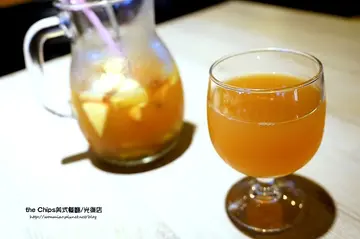the Chips美式餐廳可說是台北數一數二超高人氣美式餐廳,有著美式的休閒與熱情,加上大份量的餐點,假日一到便成了很多人聚餐時的首選!!搭乘大眾交通工具捷運,自國父紀念館站2號出口步行不到十分鐘即可抵達,便利的交通也幫大家省去不少找停車位的麻煩哦~一進到店內,空前的盛況,唯有people mountain people sea這句成語可以形容啊~~~配合美式的歡樂氣氛,店內播放著快節奏的歪國歌曲,服務人員個個笑臉迎人,讓人感染到了年青無敵的熱力與美式的熱情,加上席間來自客人此起彼落的歡笑聲,整家店的用餐氣氛真的非常嗨哦~待我們入座同時,親切的服務人員立即為我們送上一整壺健康的檸檬水,今夏天氣熱得讓人暈頭轉向,大家可真的要多喝水啊~~餐桌上同時備有餐具及基本調味料,餐巾紙,wifi密碼....,餐桌旁的立牌,也有店內最新優惠活動可以參考,有來用餐的朋友們可別忘了多加利用哦!雖然汪喵用餐當天呈現一整個大爆滿的狀態,但送餐速度掌握得相當好,點餐後没有多久,餐點便陸續上桌囉~~私房噴汁炸雞/220元當天在門口牆壁上看到媒體報導的剪報加上"噴汁"二字就讓人超想點的,私房配方加上揪西的脆皮炸雞,簡直凡人難擋啊~~一上桌香噴噴的炸雞,遐得人猛吞口水~~炸雞表面呈現琥珀色閃亮亮的誘人色澤,一口咬下果然夠酥夠脆,鹹香酥脆的雞皮也是炸雞最讓人消魂著迷的重點所在,讓人也顧不得熱量問題,恣意享受大口吃肉的痛快感~~揪西的肉質,彈牙中不失嫰度,讓人啃到不要不要的,吮指回味無窮!不愧榮登店內藍巴萬的人氣美食!!炸雞底下還舖了酥脆的脆薯,最適合聚餐時邊吃邊聊的嘴呷咪呀!淡蘿勒辣味海鮮細扁麵/350元喜歡海鮮又嗜辣的我,忍不住點了一次可以吃到多種海鮮的義麵。主廚隨興的擺盤,紅通通的大蝦上一抹翠綠點綴,看似平常的美食,滋味卻完全不平凡!濃郁的醬汁緊緊包裹住每條細扁麵,充滿蘿勒香略帶辣味,很容易讓人一吃便停不下來!個人相當喜歡這道由綜合海鮮做出的細扁麵!海鮮內有軟嫰的魚肉。不大顆卻鮮甜無比又膨皮的新鮮蛤蜊,入口超爆汁!彈牙的透抽圈,越嚼越鮮甜!一整盤吃下來不僅份量十足,也滿足了汪喵的海鮮魂!!花生抱誰/330元名稱非常特別的花生抱誰,大家猜猜花生到底抱滴是誰呢???你猜對了嗎?就是台灣之光"香蕉"啦~~花生醬做的漢堡不稀奇,香蕉,花生醬與漢堡的奇妙組合,據說是貓王Elvis Presley的最愛呢!讓人忍不住想要嚐試看看!!配菜五選一汪喵選了限量季節鮮水果,一小盆滿滿的水果,淋上優格醬,酸酸甜甜健康又開胃!!麵包可以選擇一般的漢堡麵包,也可以選擇燕麥,喜歡吃得健康一點的我們選了後者,彈牙中又能吃得到裸麥香,越嚼越香甜!!夾入美生菜,蕃茄片,酸黃瓜,清爽的滋味,讓炎炎夏日不振的食慾,提振了不少呢!!表面微酥的炸香蕉入口很快就化成一股甜蜜蜜,和濃郁滑順微微吃得到花生顆粒的福源花生醬,吃來更加香濃可口!中間夾上一層起司,鹹甜交錯,底部漢堡排為七分熟,吃來鮮嫰多汁,口感相當軟嫰,第一次吃到花生抱香蕉,兩者的組合讓人覺得意外的好吃!!也讓漢堡的滋味更加甜美動人~鮮奇異果汁/140元現點現打的新鮮奇異果果汁,果肉打得非常細緻,酸酸甜甜,營養健康百分百!超適合今夏炎熱的天氣,清爽又解暑!招牌冰鮮果茶/190元超大一壺鮮果茶,適合兩個人一同分享。鮮果茶內有不少新鮮果肉,有蘋果,奇異果,葡萄,草莓....,真材實料完全看得見!!一般水果茶大多加了不少百香果果漿,雖然很香但普遍口感都偏甜,喝到最後通常會讓人覺得容易膩口。the Chips美式餐廳的鮮果茶,喝來只有天然的微微甜,既能享受到天然果香也能喝得到茶的芬芳怡人,相對清爽又無負擔!以高腳杯盛裝,更加有喝下午茶的fu~法式水果冰淇淋/180元切片的法式長法泡上鮮奶有機橙酒蛋汁,再以平底鍋煎至表面金黃,佐以當季水果切片及一球淋了莓果醬的香草冰淇淋,滿足了心,同時也滿足了甜點胃!!法式吐司表面煎得微酥,沾到蛋液的部份蛋香味相當濃郁,入口酥中又有軟綿彈牙的口感,香甜可口,這大概是汪喵近期內吃到最好吃的法式吐司了吧!!底部淋上帶點鹹味的焦糖醬,可以沾著吃,也可以佐以酸甜的水果片,讓甜點吃來層次更加豐富,不會有一昩的甜膩感....。the Chips美式餐廳光復店營造出自在隨性的美式氛圍,店內前後提供超大營幕及電視可以觀賞運動賽事,美式的大份量,加上舒適寬敞的座位及空調,最適合下班後和三五好友聚餐享用美食,釋放壓力放鬆一下的好去處!!會建議給想要來用餐的朋友們,記得最好及早先訂位蛤~~※ 以上為個人食用經驗, 因口味是很主觀的, 所遇狀況也不同, 僅供參考!!查看更多