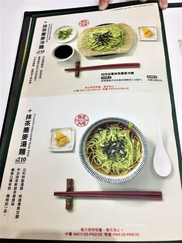TSUJIRI辻利茶舗是最早來到台灣的抹茶專賣店,最近推出的夏季系列看起來很消暑,與同樣來自日本九州的柚子蜜做結合,相較於抹茶搭配檸檬的猛烈刺激感,柚子微酸甜蜜的滋味嘗起來更為舒適清新香氣迷人。(一訪松山車站店文章連結) 市政府站3號出口微風信義百貨的4樓樓層,明亮燈光搭配白綠兩種色系及偏白的木材質,格外顯得潔淨清爽。 店內位置不多,有一處是小和室,進入需拖鞋。跟其他店一樣都是採半自助式。內用有幾項規則需了解1.請先取菜單及號碼牌,找尋空位入席2.點餐時將菜單以及號碼牌上的"號碼卡抽起來",至櫃台點餐3.點餐完畢服務人員會將菜單、號碼卡收走。4.接著服務人員會看桌上的號碼牌來送餐。用餐完畢需協助將餐具放置回收台。 辻利茶泡飯 NT$180 (限定內用)供應時段11:00-14:00、17:00-20:00,餐點送來時,服務人員會解說吃法,主要是將玄米茶淋在兩個烤過的味噌飯糰上,分別是鹹紅味噌跟甜白味噌,玄米茶可以二次以上沖泡,再淋上之前可以先品嘗烤飯糰的原味。飯糰的焦苦香氣頗重米粒偏硬,紅味噌稍微重鹹了些,白味噌帶淡淡甜味較得我們喜愛,與玄米茶一起享用有淡淡的茶香,但我覺得單吃會更好。另外旁邊的芥末不小心全部都混入,導致味道太過搶鋒頭。 綠茶蕎麥冷麵 NT$210 (限定內用)供應時段11:00-14:00、17:00-20:00,由無農藥的粉末綠茶製作的蕎麥麵條顏色偏淡看起來自然許多,在份量上看起來也特別多,對於愛吃冷麵的人是個不錯的選擇,蕎麥麵條再沾上鰹魚醬油後Q彈沁涼很滑順,生芥末全加風味更棒。 柚綠刨冰 NT$185 (夏季限定供應至8/31為止) 淋上抹茶與柚子蜜的碎冰為主要本體, 裏頭夾藏紅豆泥、霜淇淋,頂部有抹茶白玉及糖漬栗子, 刨冰大多是柚子蜜的清香清爽清新, 融合帶有牛奶味的霜淇淋及紅豆泥味道便豐富起來,且不會覺得膩。 柚綠聖代(抹茶) NT$190 (夏季限定供應至8/31為止 原本的柚綠聖代是配香草牛奶霜淇淋價格是NT$180, 可選加價NT$10的抹茶口味,柚子凍的顏色是這杯聖代的亮點, 看起來有點奇妙,但其實是使用洋菜製作的且無色素添加, 頗讓人訝異,口感軟滑有點近似入口即化,泛著柚子香還蠻濃, 抹茶霜淇淋濃密質地,但較多的是牛奶香氣且甜度頗高,吃到後來會有點膩口。查看更多